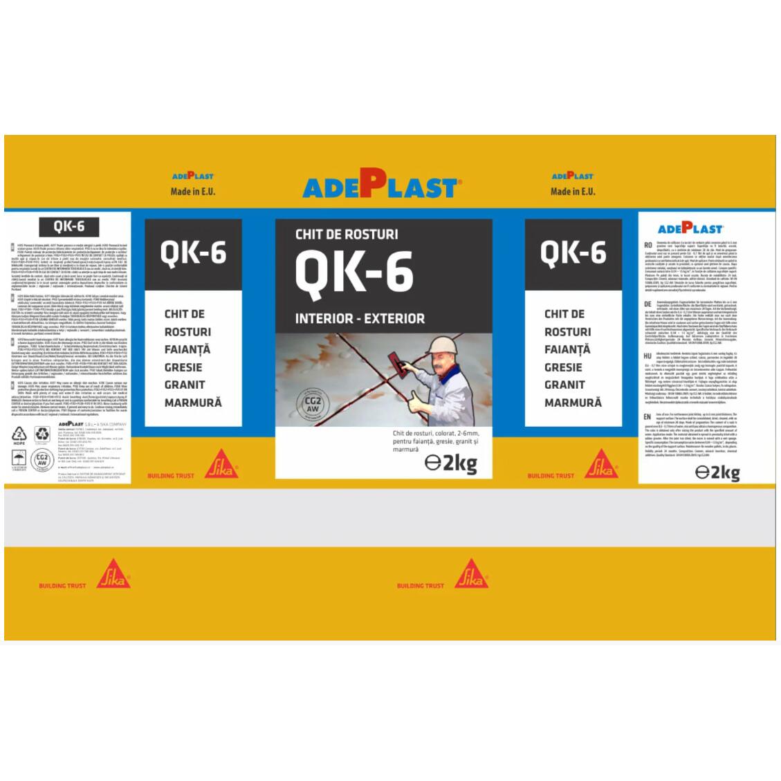 Quarz Kit QK - 6 de la Adeplast este un chit de rosturi flexibil recomandat pentru rostruirea placarilor ceramice. Acesta se aplica atat la interior, cat si la exterior pe suprafete expuse la temperaturi intre - 20 grade Celsius si 90 grade Celsius, cu sau fara umiditate. Produsul se aplica numai pe suporturi minerale precum placi ceramice, gresie, marmura, piatra naturala ce nu prezinta risc de a se decolora, gresogranit, gresie portelanata, mozaic. Produsul nu se aplica pe suporturi din lemn, metal sau plastic.