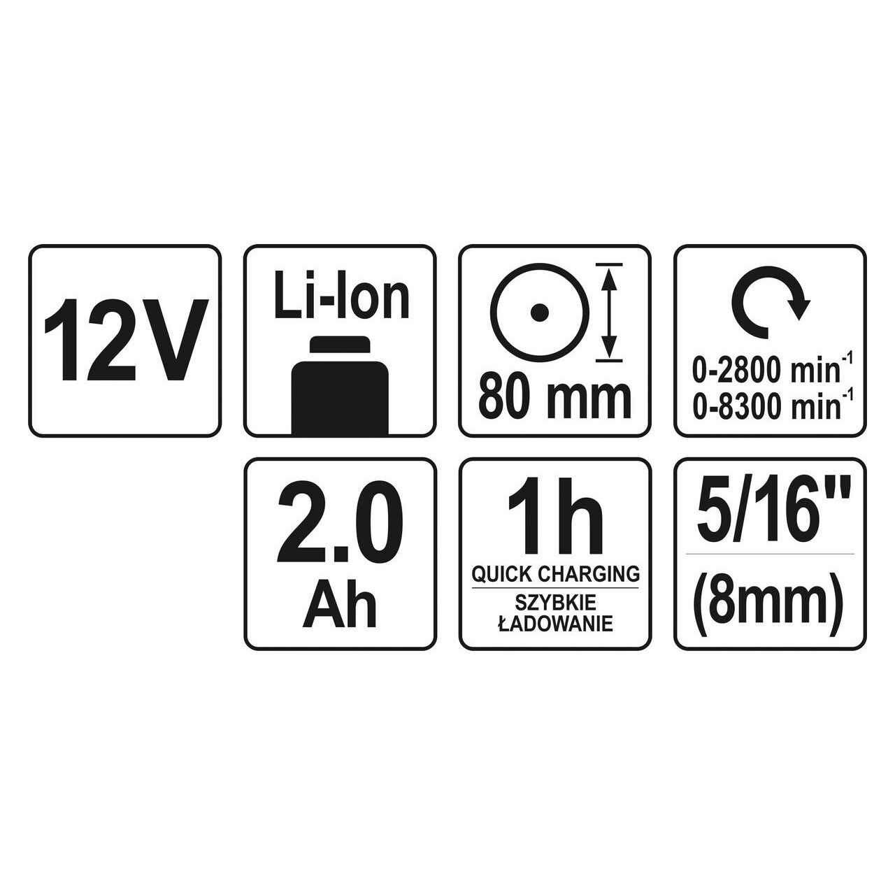 Aparat de polisat cu acumulator de 12 v, 80 mm Yato YT-82903 - Informații despre acest produs: