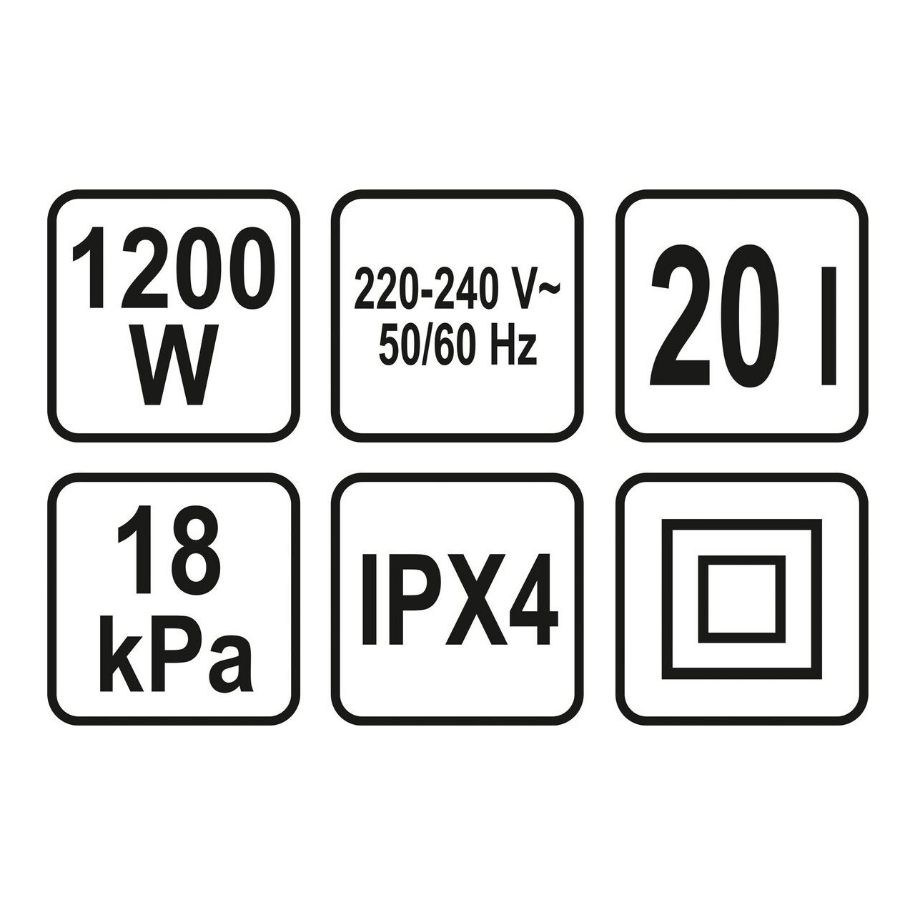 Aspirator de atelier eficient,   cu o putere de  1200W   și o putere de aspirație de până la 18 kPa. Are un rezervor cu o  capacitate de 20L . Poate fi folosit  umed și uscat.  Destinat utilizării în ateliere de acasă, garaje, subsoluri, alee și mașini.