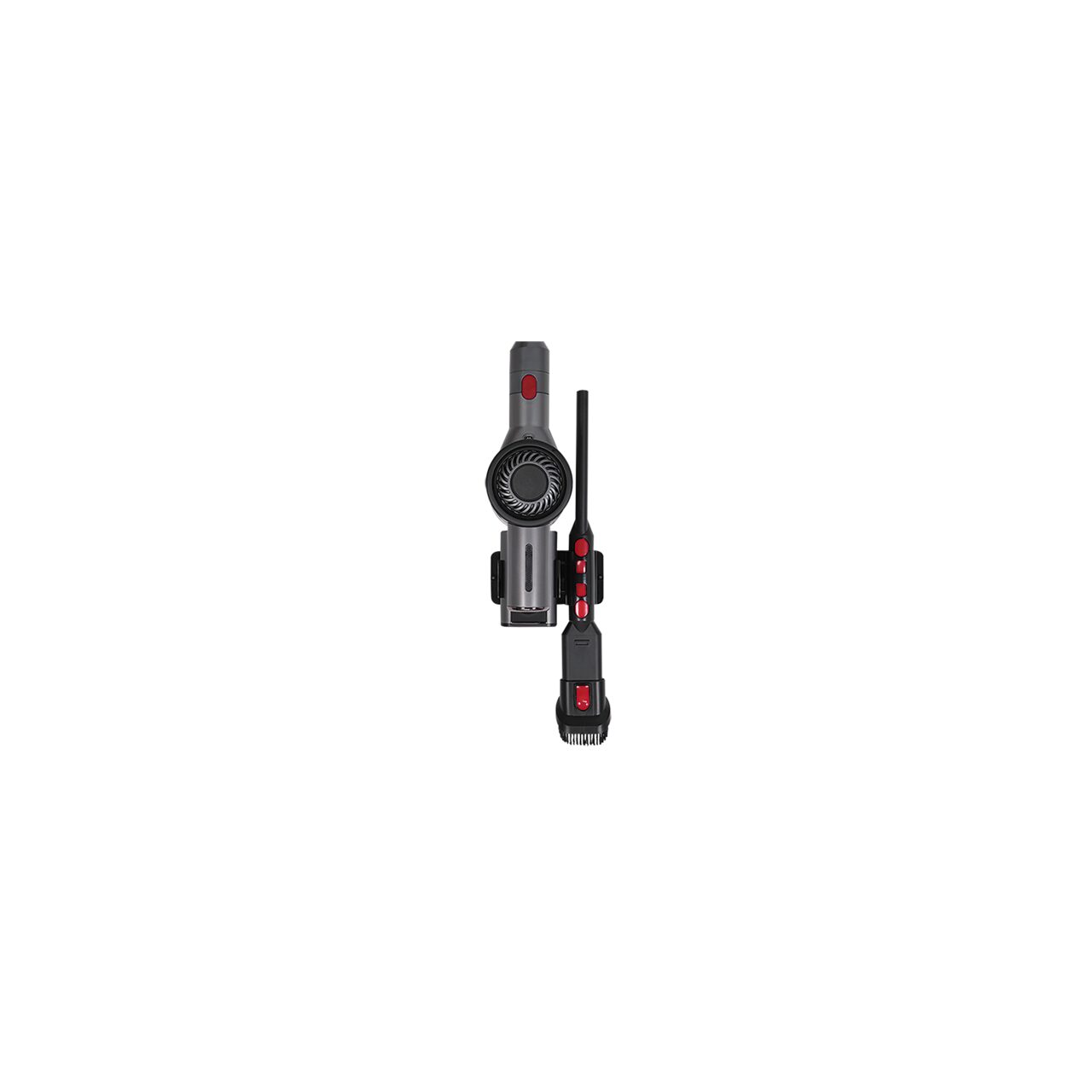 - Suportul de perete montat cu șuruburi facilitează depozitarea aspiratorului și a celor 2 duze într-un singur loc
