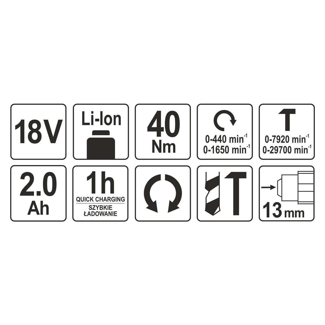 - baterii de rezervă disponibile: 2 Ah ( YT-82842 ), 3 Ah ( YT-82843 ), 4 Ah ( YT-82844 ) și 6 Ah ( YT-82845 )