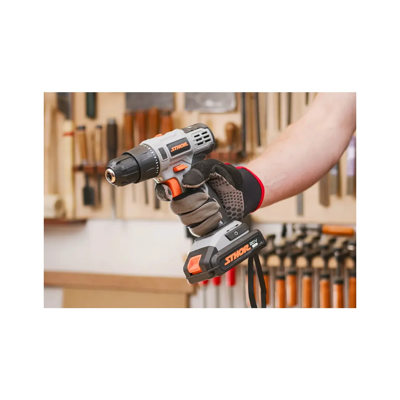 Un angrenaj planetar din oțel cu o duritate a dinților de 53-56 HRC garantează durabilitatea și puterea necesară pentru a lucra cu burghie stilou. Șurubelnița poate fi utilizată pentru găurirea fără impact în cărămidă cu burghie universale și chiar în betonul din clasa C16/20 (de exemplu, cu un burghiu Sthor 21690 de 8 mm).