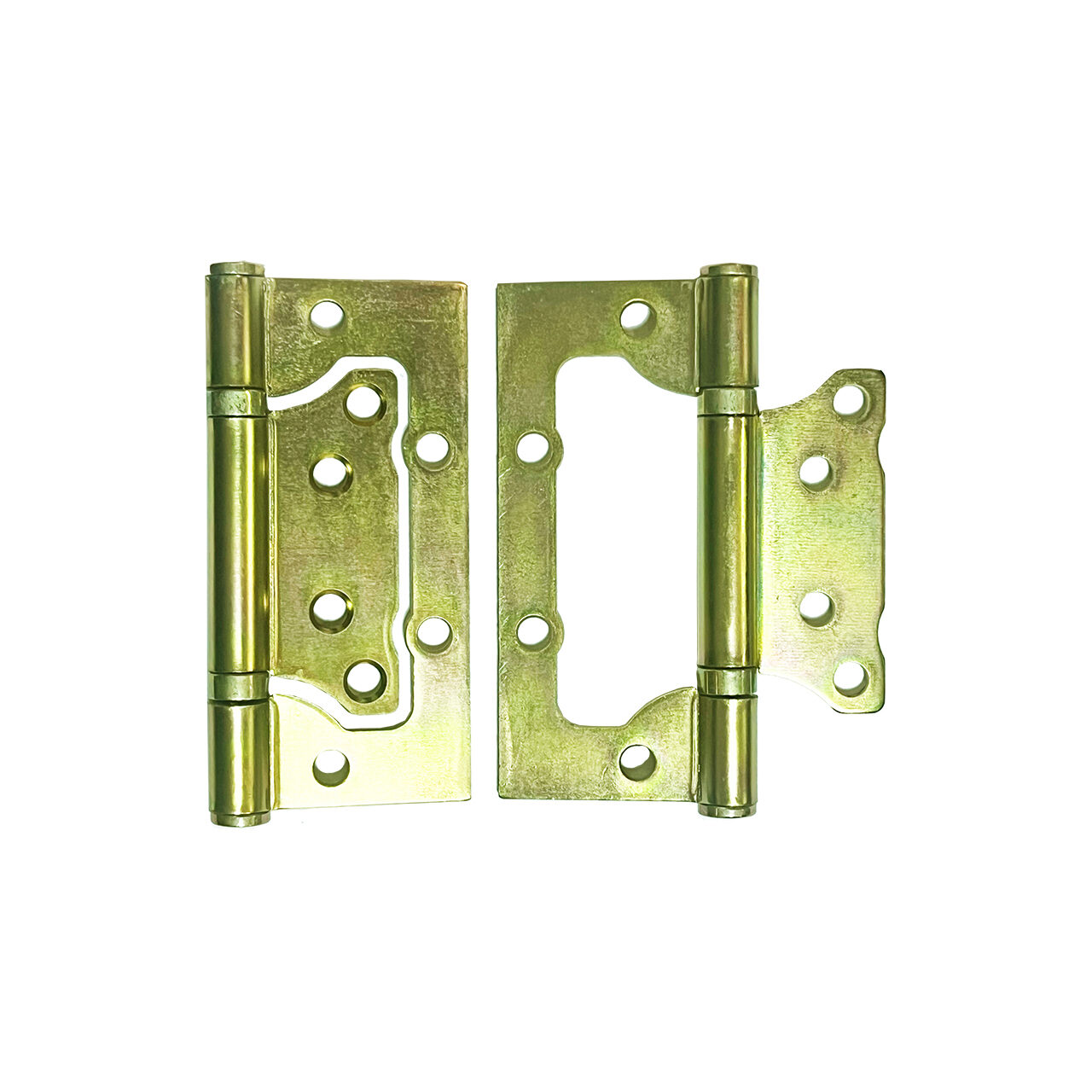 Balama inchidere completa, zincat galben, 100 MM - SET 2Specificatii:Material: otel carbon A3 grosime 2.5 mmDimensiune: 100 x 50/40 mmDeschidere la 180 gradeFinisaj zincat galbenLivrare la set 2 buc/punga