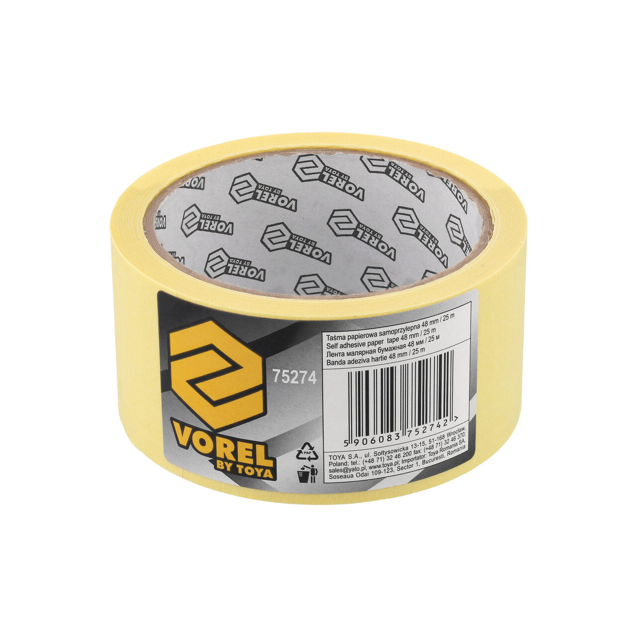 Banda adeziva de hartie 48/25 m Vorel 75274 - Informații despre acest produs: