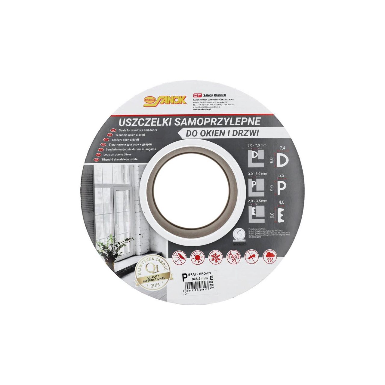 Caracteristici produsEtanșare autoadezivă pentru ferestre și uși tip P, maro. Dimensiuni 9x5.5mm. Ambalat pe o rolă de 100 m. Fabricat din cauciuc EPDM, care se caracterizează printr-o rezistență foarte bună la condițiile meteorologice, radiațiile UV, oxigen și apă. Au un strat autoadeziv armat cu o plasă din fibră de sticlă. Etanșările autoadezive asigură o protecție eficientă împotriva frigului, vântului, căldurii, zgomotului, ploii și insectelor. Acestea vă permit să economisiți energie cu până la 35%. Destinat utilizării în goluri de 3,0 ~ 5,0 mm.Domenii utilizareAplicatie pentru ferestre si usi si alte elemente de tamplarie.Parametrii- Cantitate [buc]: 2 * 50