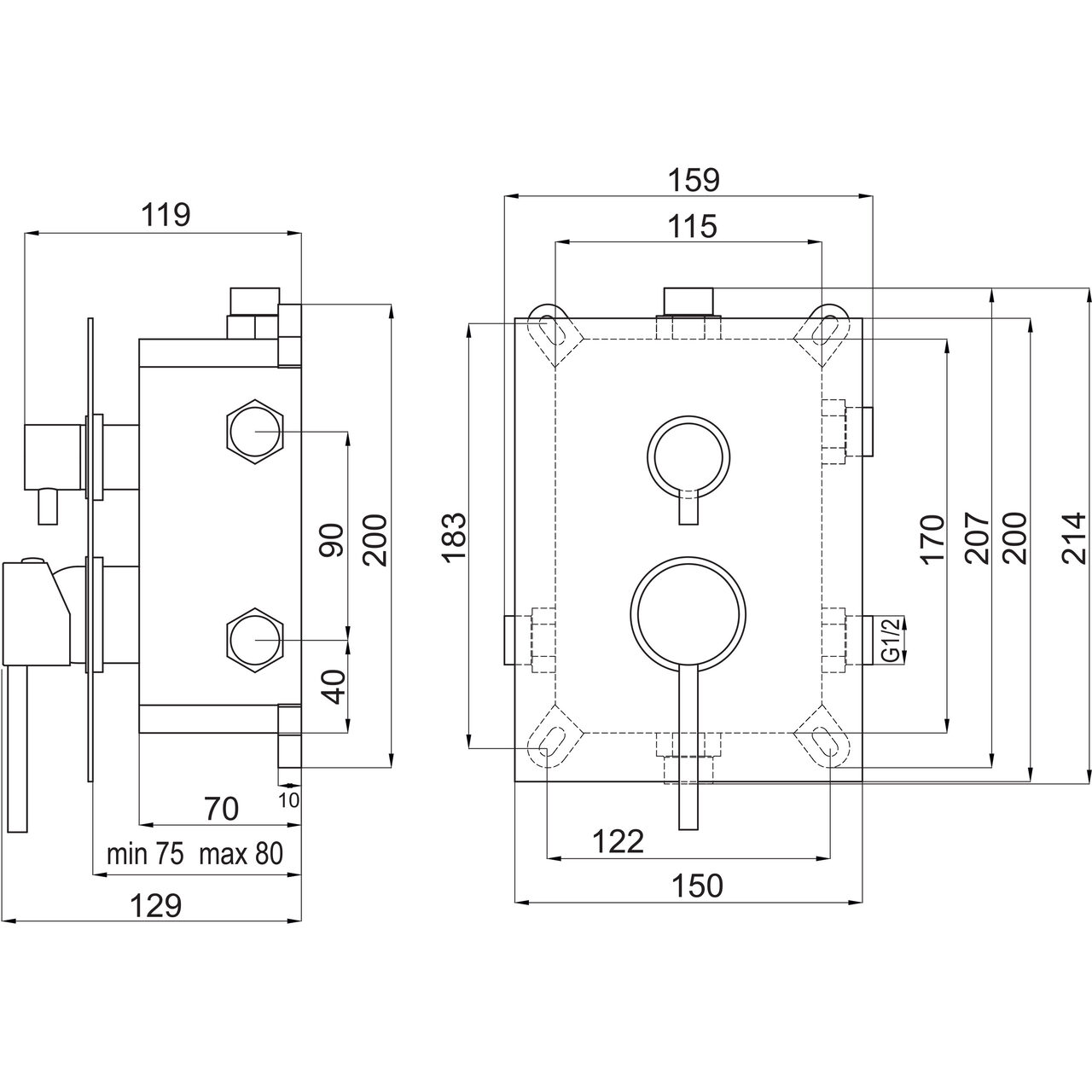 Este compatibilă cu instalații care folosesc racorduri G1/2, permițând conectarea la componente ce respectă acest standard.