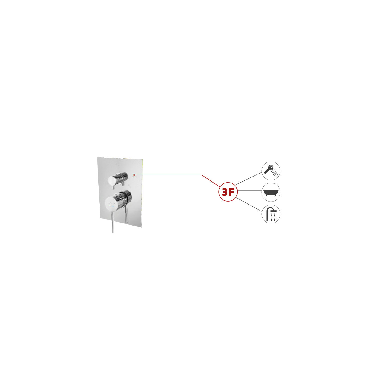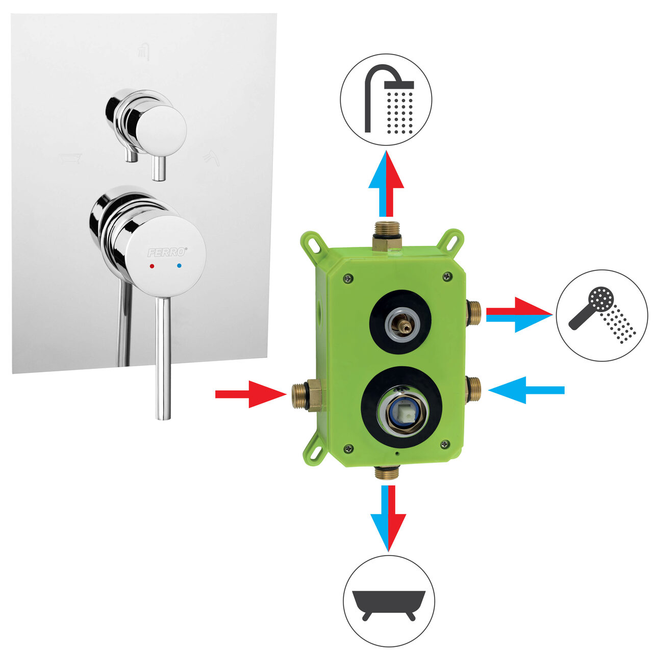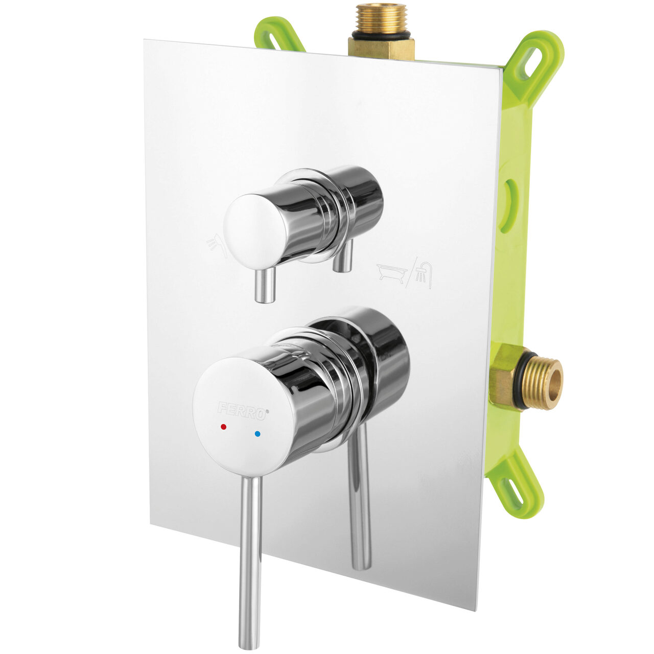 Baterie ingropata cada/dus 3 iesiri Fiesta, crom cu caseta montaj, Ferro BFI7P3BOX - Informații despre acest produs: