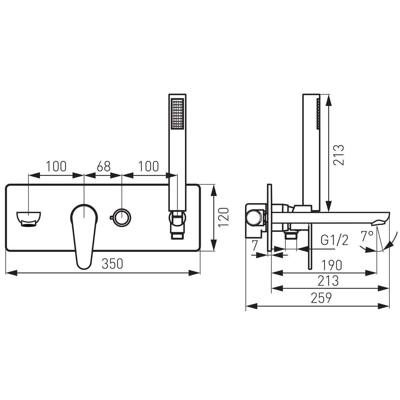 - Lungime pară de duș: 213 mm