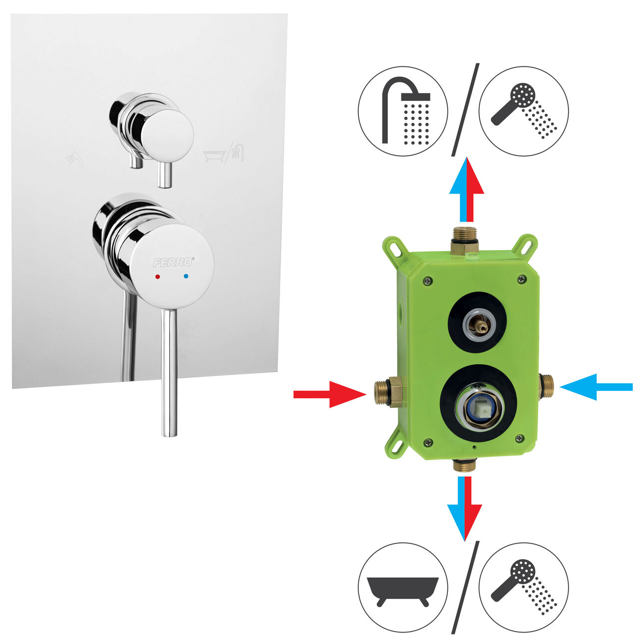 Baterie ingropata cada/dus Fiesta, crom cu caseta montaj, Ferro BFI7P2BOX - Informații despre acest produs: