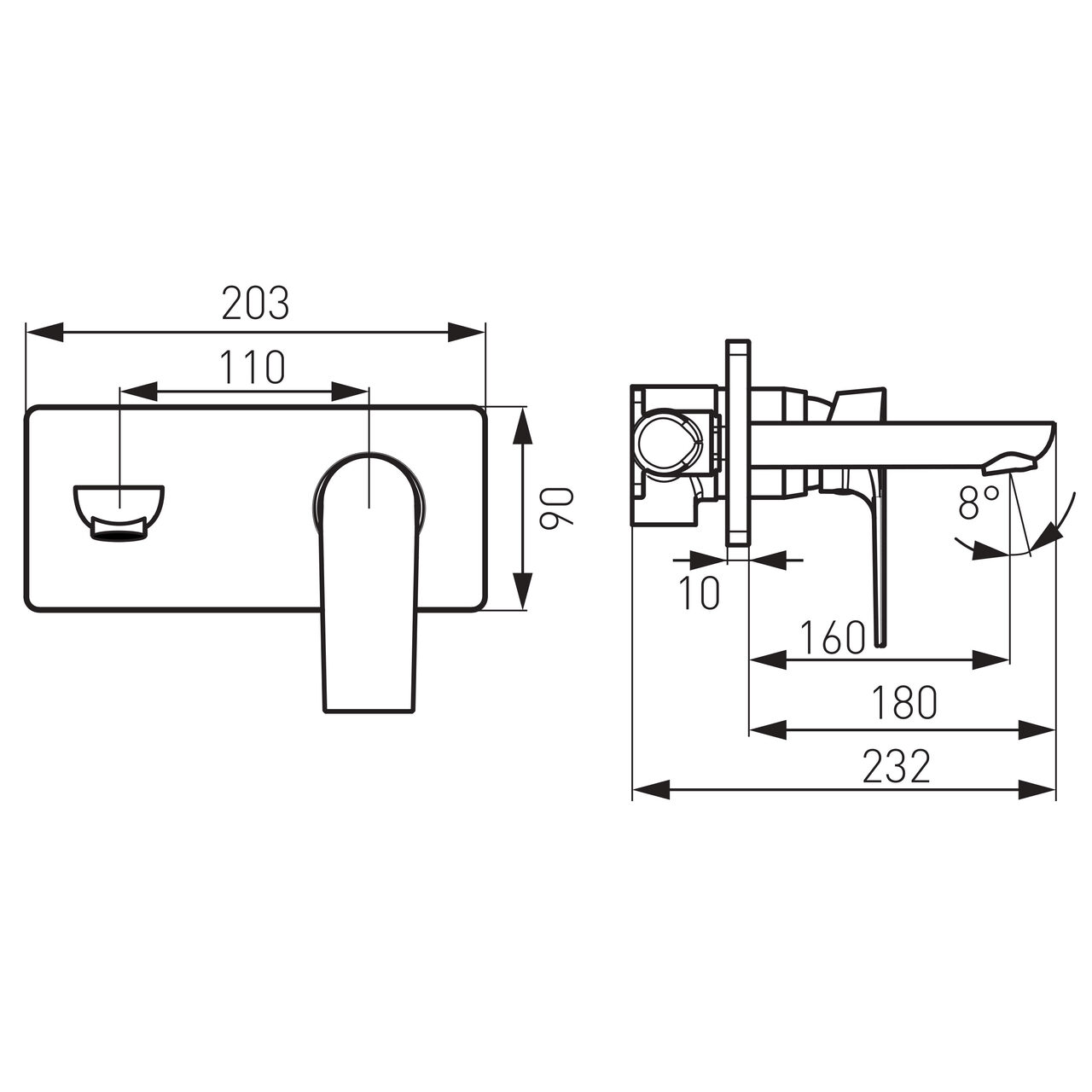 Este recomandată pentru lavoare configurate pentru alimentare prin baterie de perete, unde pipa dirijează jetul direct în cuvă fără obstacole.