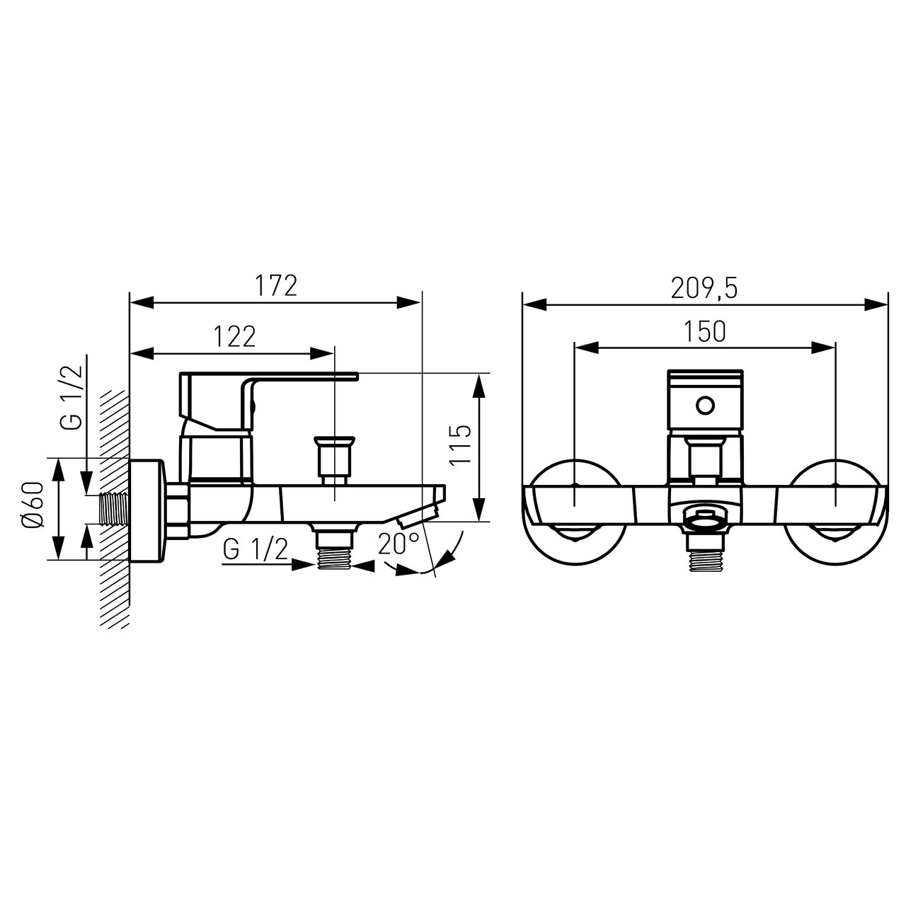 Baterie perete cada/dus Alba VerdeLine, crom fara accesorii, Ferro BLB1VL