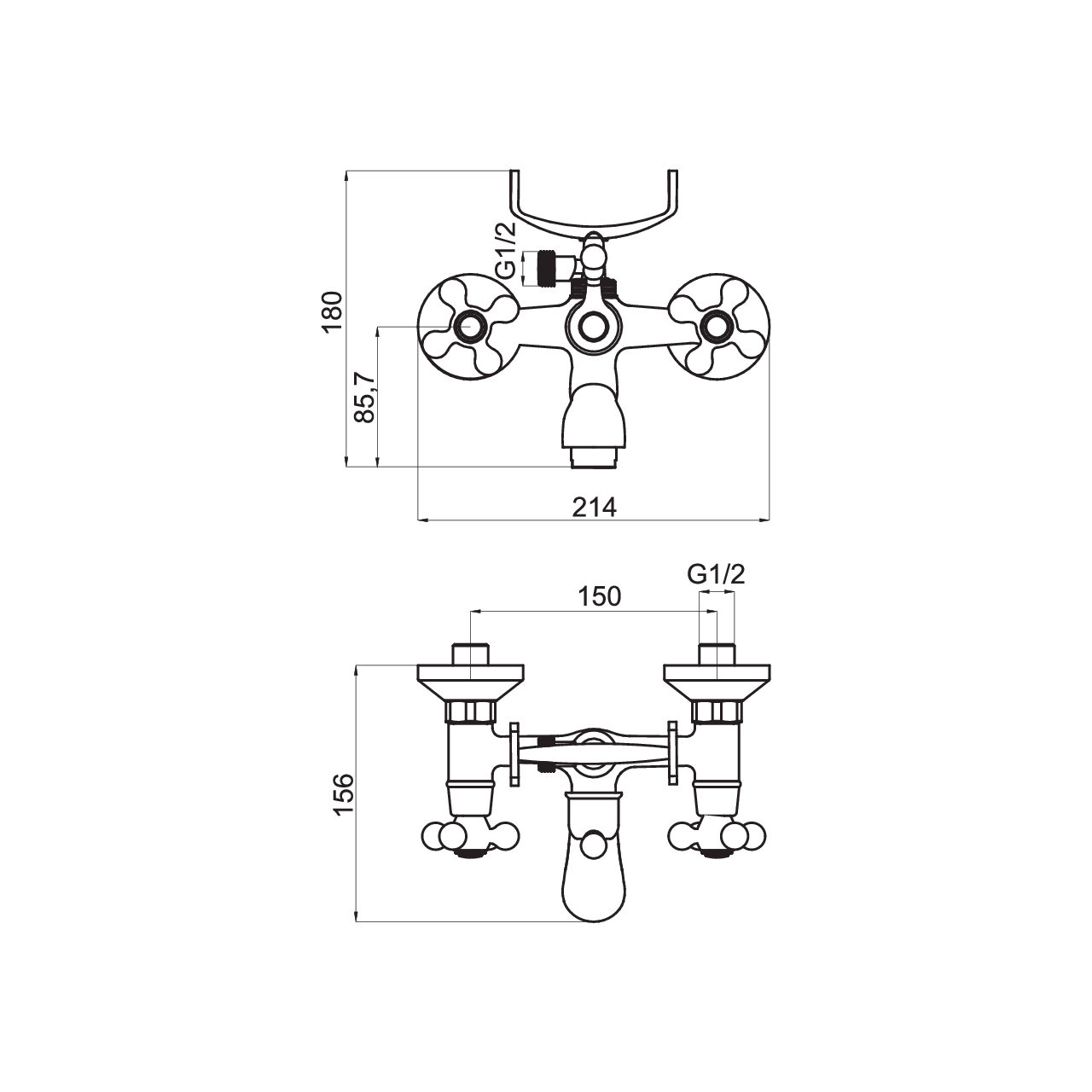 Concepută pentru montaj pe perete, această baterie oferă o instalare clară datorită racordurilor excentrice G1/2 și distanței între intrări de 150 ± 20 mm. Comutarea între cadă și duș este facilă prin comutatorul cadă/duș integrat, iar lungimea pipei de 156 mm asigură un jet direcționat confortabil în cadă. Corpul din alamă contribuie la robustețe în utilizare zilnică, iar lățimea de 212 mm și înălțimea de 180 mm ajută la încadrarea corectă pe perete. Configurația este potrivită pentru băi care prioritizează montajul standardizat, oferind compatibilitate cu conexiuni uzuale și o trecere rapidă între funcții fără ajustări suplimentare în utilizare.