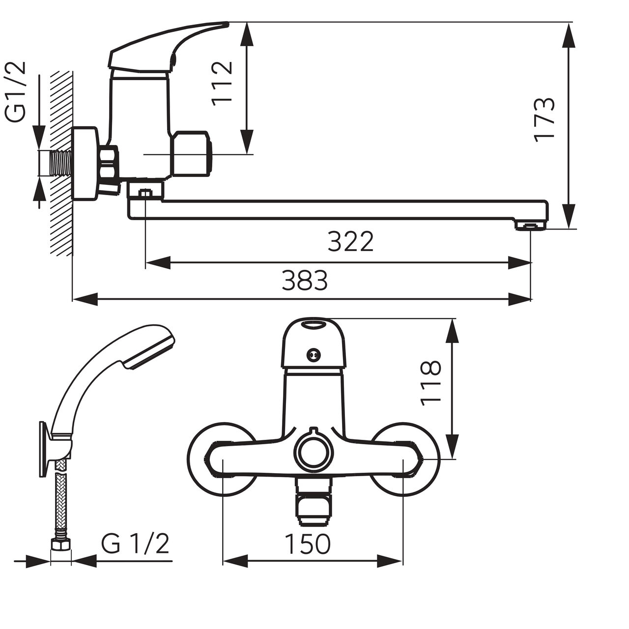 - Tip produs: baterie perete pentru cadă-duș