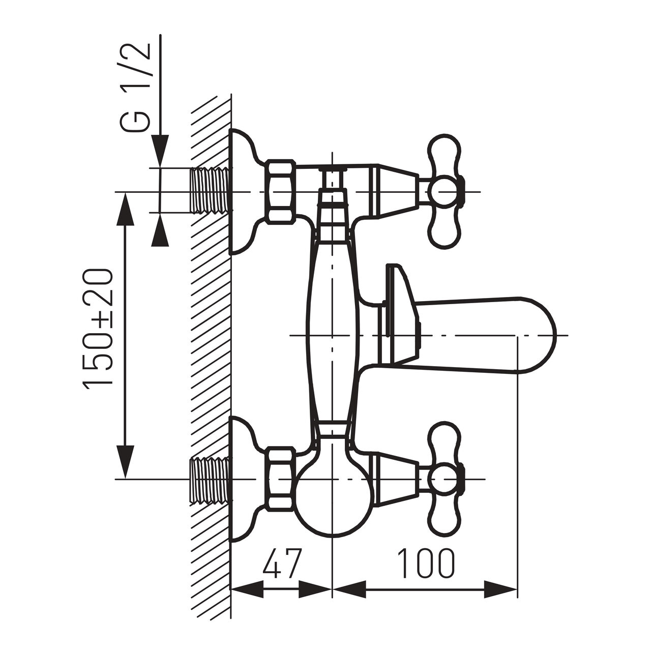 - Distanța între racorduri: 150 ± 20 mm
