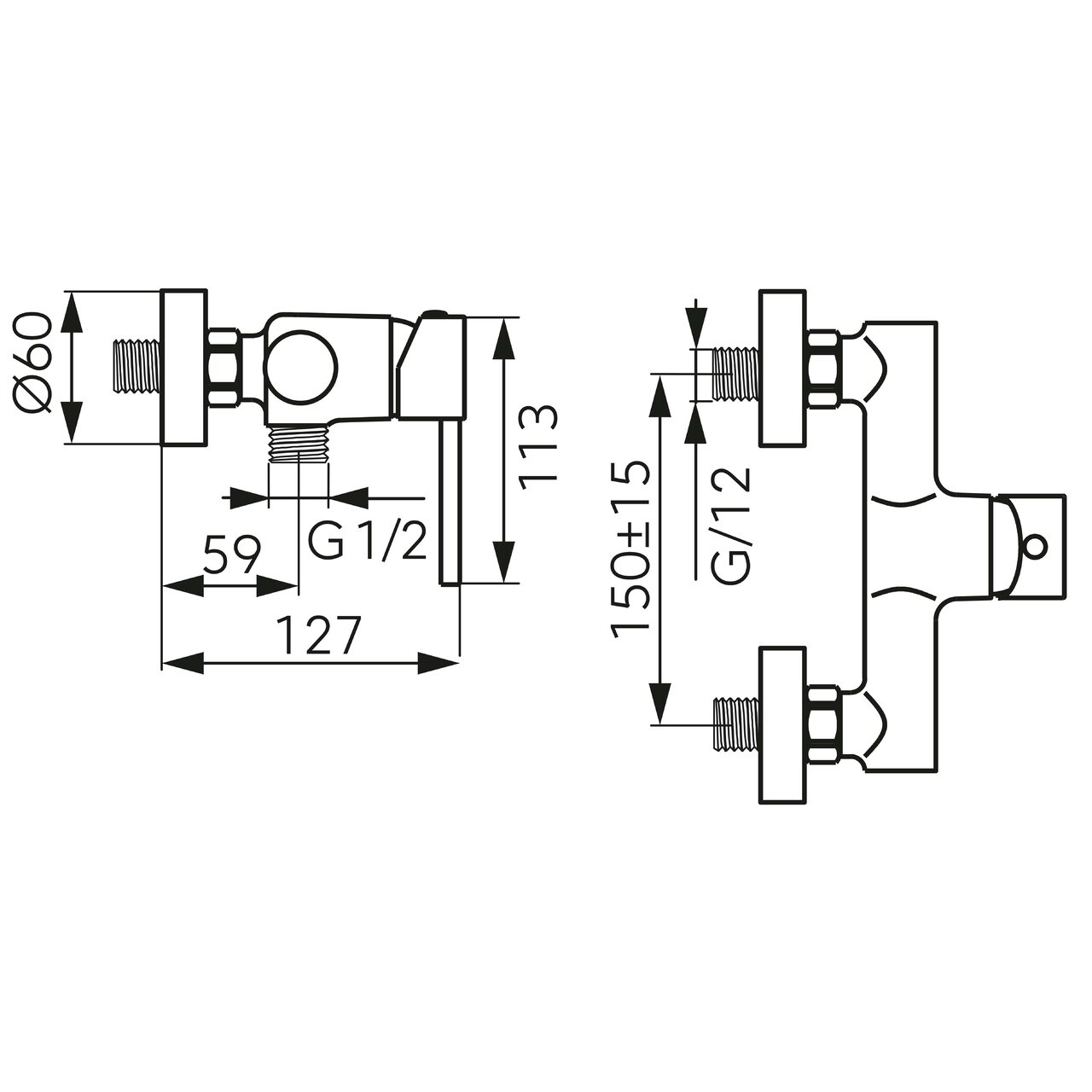 - Distanța între racorduri: 150 ± 20 mm