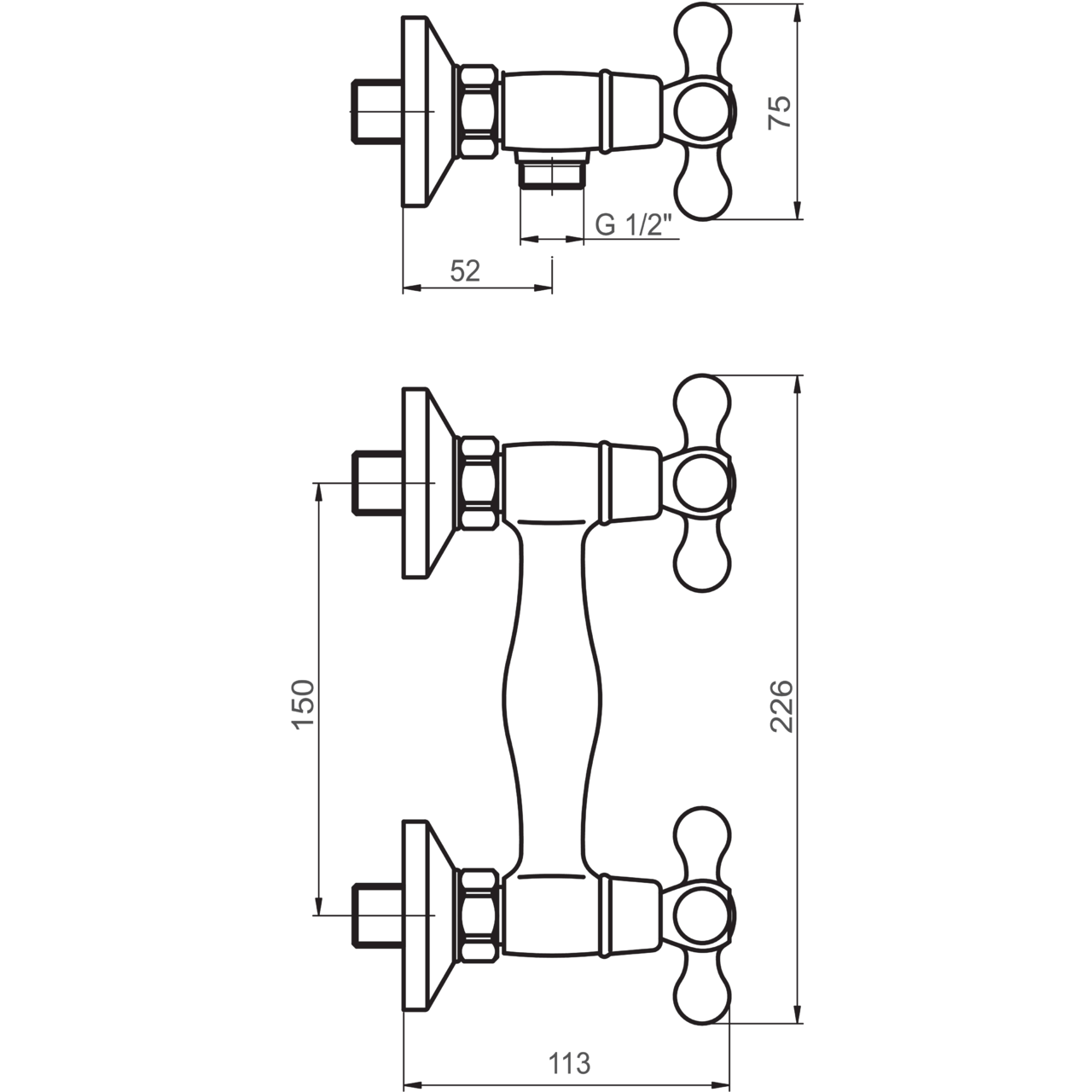 Concepută pentru montaj pe perete, această baterie facilitează o instalare rapidă datorită racordului excentric G1/2, compatibil cu standardele uzuale pentru duș. Corpul din alamă oferă rigiditate și stabilitate mecanică în utilizarea zilnică, iar dimensiunile compacte contribuie la integrarea în spații reduse. Distanța de montaj este flexibilă, datorită distanței între racorduri 150 ± 20 mm, permițând alinierea la instalațiile existente. Lipsa unui set de duș inclus lasă libertatea de a alege furtunul și para preferate, menținând compatibilitatea cu conexiunile standard. Proiectată pentru manevrare fermă și cursivă, bateria oferă control clar al debitului și temperaturii, fără elemente suplimentare care să complice operarea.