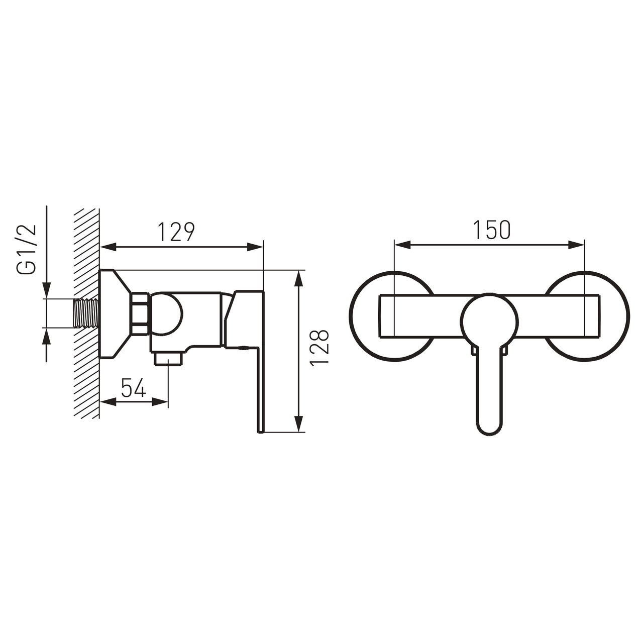 Da. Conexiunea este pe racorduri excentrice G1/2, cu distanță între racorduri de 150 ± 20 mm, acoperind standardul uzual de 150 mm.