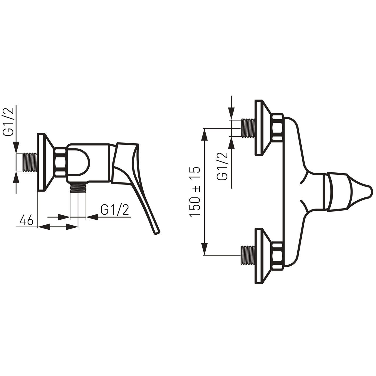 Este compatibilă cu instalații care folosesc racorduri excentrice G1/2 și o distanță între axe de 150 ± 15 mm.