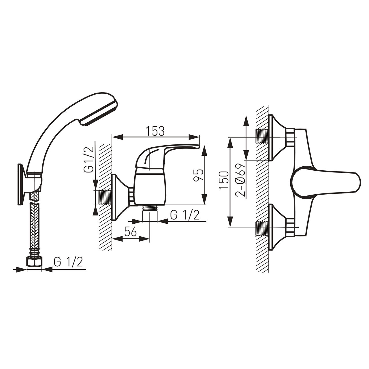 Setul include bateria de perete, para de duș și furtunul de 1500 mm. Para oferă un singur jet, orientat spre utilizare zilnică simplă.