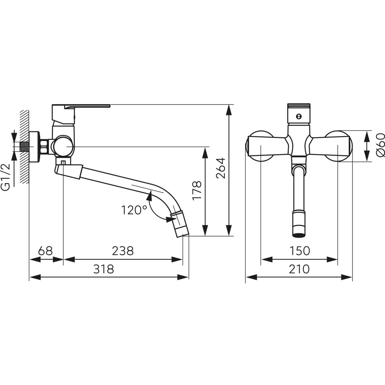 - Distanța între racorduri: 150 ± 20 mm