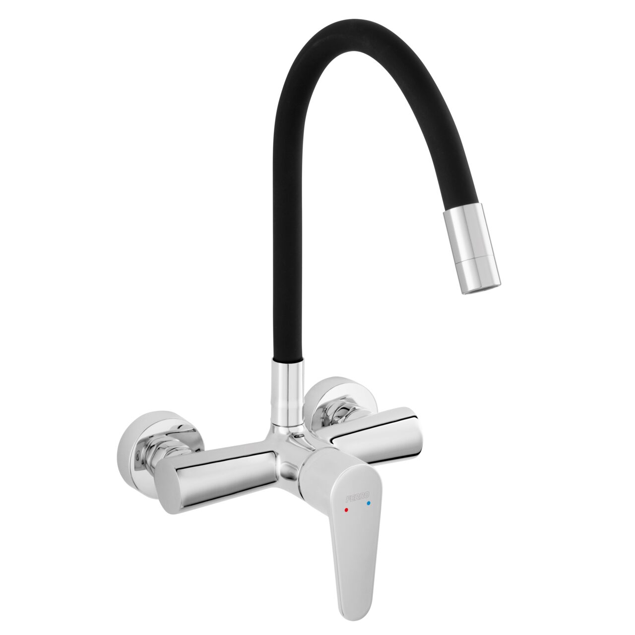 Baterie perete lavoar/spalator Algeo, crom cu pipa elastica neagra, Ferro BAG5UFB - Informații despre acest produs: