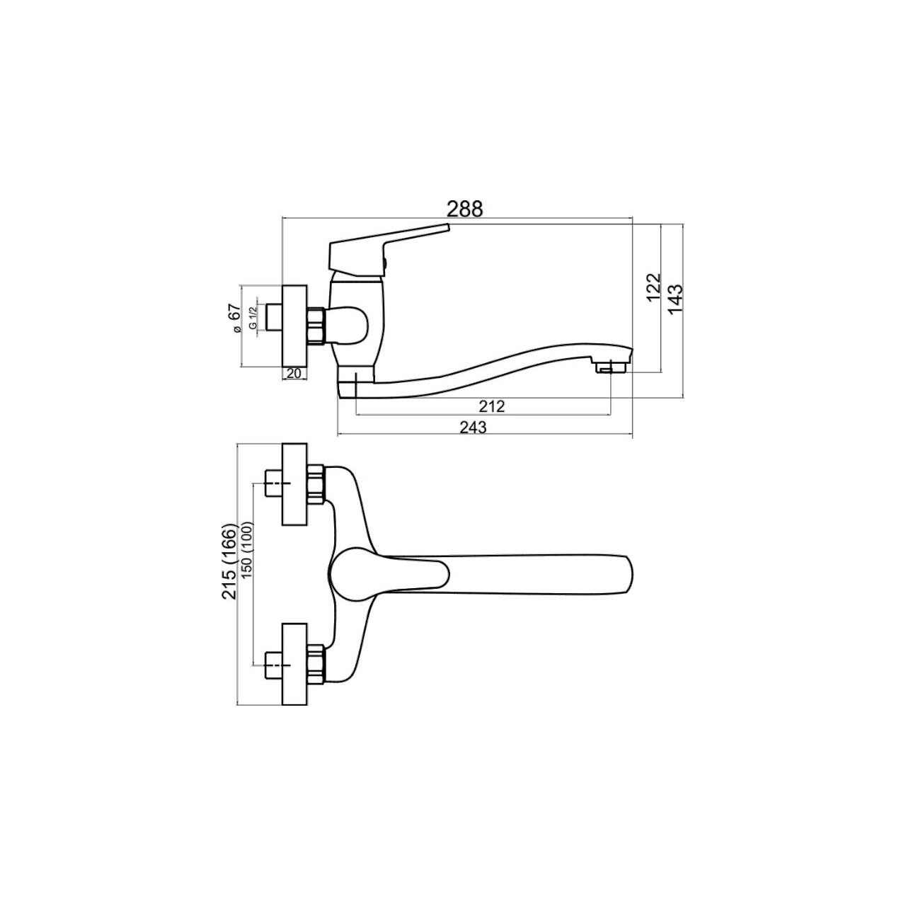 Baterie perete lavoar/spalator Iris New, crom fara accesorii, Ferro 94470/T,0