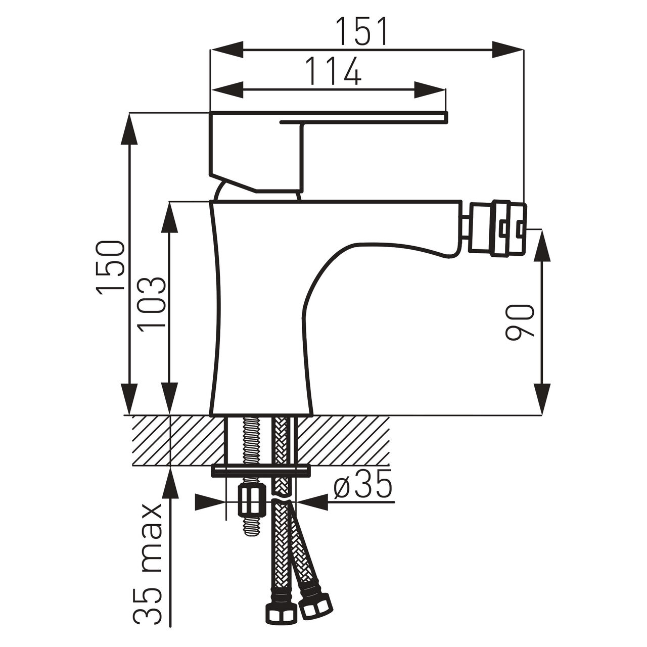 Controlul precis al debitului și temperaturii este asigurat de cartușul ceramic pentru reglaj fin, proiectat să mențină o mișcare lină a manetei în utilizarea zilnică. Instalarea este facilă datorită racordurilor flexibile G3/8 - M10x1, compatibile cu alimentări uzuale din baie. Jetul este uniform și bine direcționat prin aeratorul M24x1 cu efect de jet, contribuind la confortul utilizării bideului. Spălarea și clătirea sunt ușor de gestionat cu o pipă de 125 mm și o înălțime de evacuare a apei de 90 mm. Construcția din carcasă de alamă pentru rezistență mecanică oferă stabilitate la montaj, iar grupa acustică II ajută la limitarea zgomotului în funcționare pentru un plus de confort auditiv.