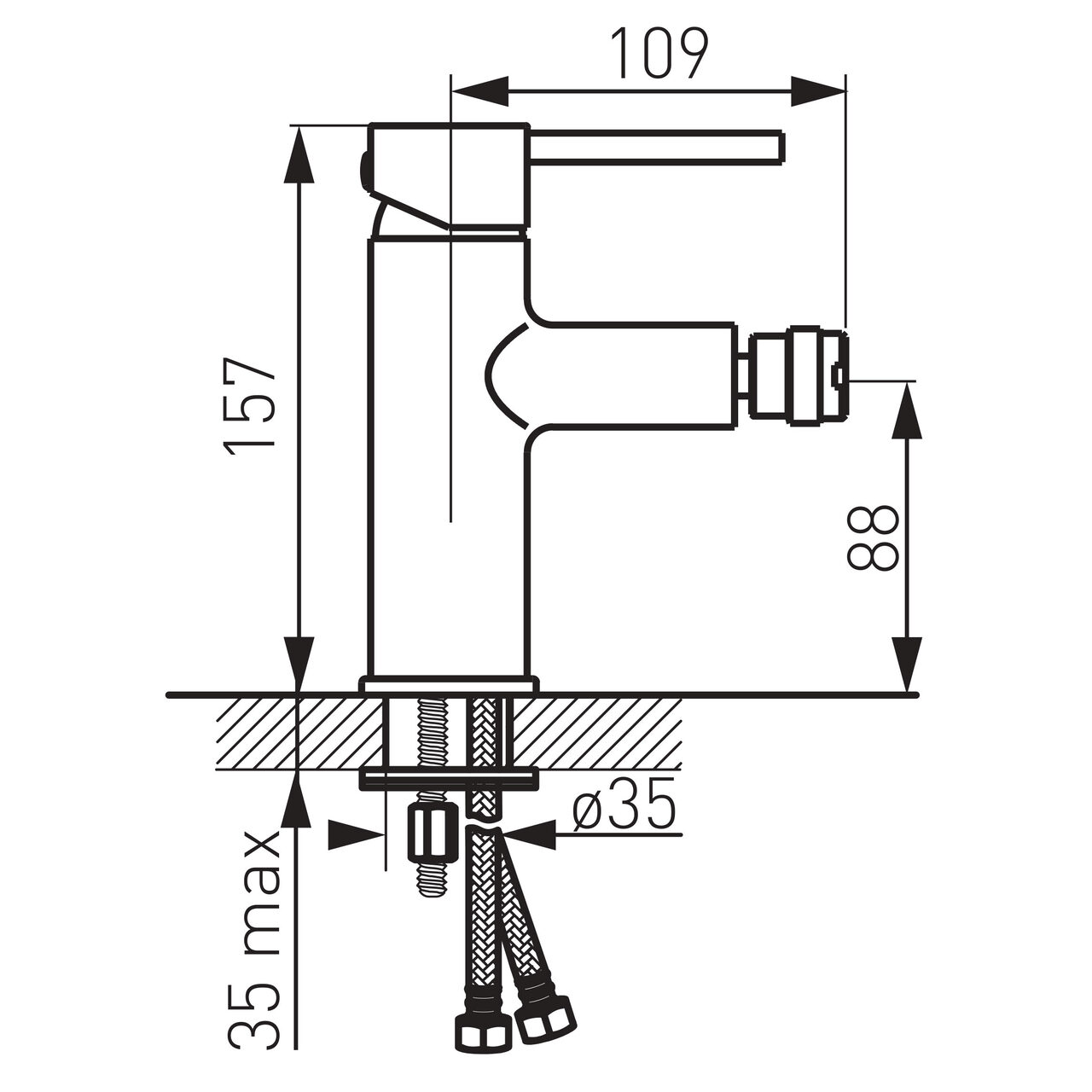 Proiectată pentru montaj pe bideu, soluția oferă conexiuni flexibile G3/8 - M10x1 care facilitează integrarea în instalații existente și asigură o etanșare corectă. Controlul este realizat prin cartuș ceramic pentru reglaj precis și durabil, iar aeratorul M24x1 furnizează un jet aerat controlat pentru confort la utilizare. Dimensiunile compacte, cu lățime de 45 mm și o înălțime a bateriei de 157 mm, permit instalarea în spații reduse, menținând o ergonomie adecvată. Înălțimea evacuării de 88 mm și lungimea pipei de 109 mm contribuie la direcționarea eficientă a apei. Carcasa din alamă susține o utilizare îndelungată, iar grupul acustic N ajută la funcționarea silențioasă în scenarii domestice.