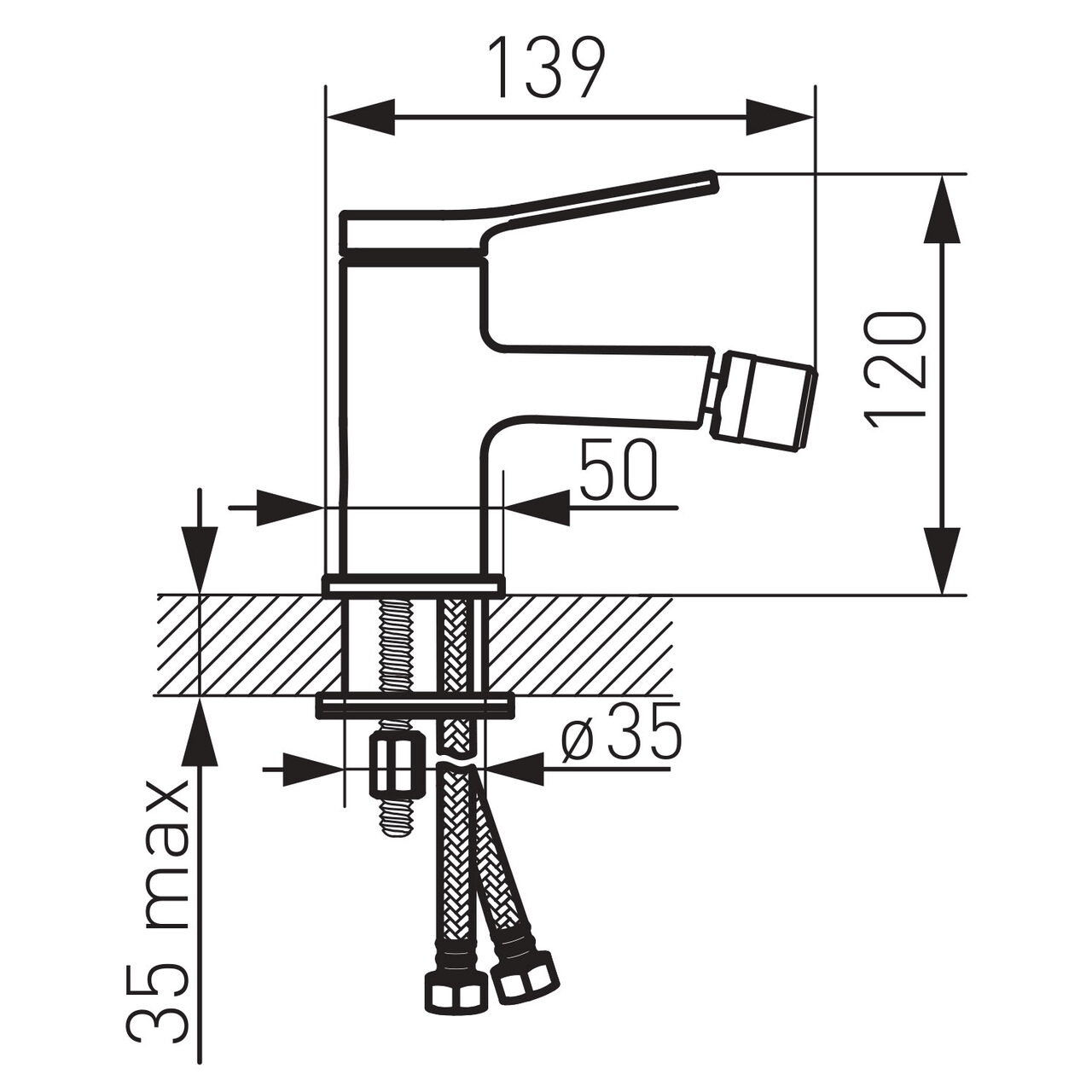 Dimensiunile compacte facilitează integrarea pe bideu fără a ocupa spațiu suplimentar, iar controlul debitului este stabil datorită cartușului ceramic. Corpul din alamă contribuie la rezistența mecanică și la o durată de utilizare predictibilă, păstrând totodată o manipulare precisă a manetei. Evacuarea la 55 mm oferă un jet ușor de direcționat pentru igienă zilnică, iar pipa de 139 mm asigură acoperirea zonei de utilizare. Aeratorul M22x1 generează un flux omogen și limitează stropirea, menținând confortul în exploatare. Înălțimea totală de 120 mm ajută la montaj în spații reduse, iar clasa acustică II contribuie la reducerea zgomotului în funcționare, utilă în băi folosite frecvent.