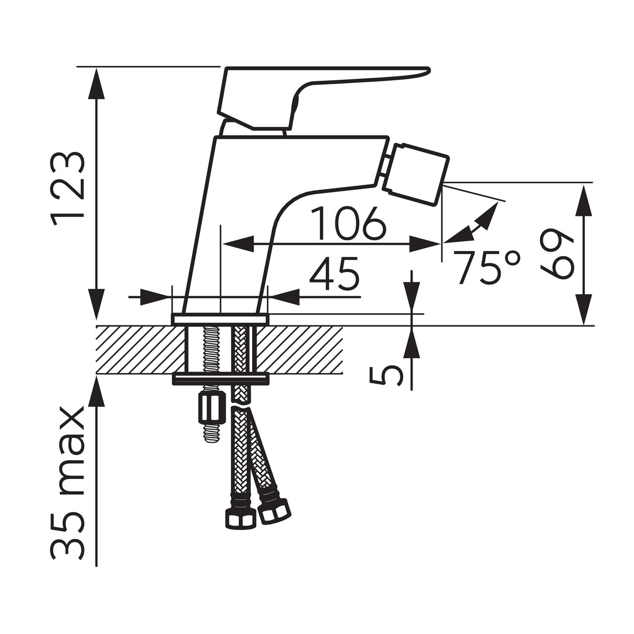 Optimizată pentru utilizarea zilnică la bideu, bateria stativă oferă control precis al fluxului prin cartuș ceramic și un debit eficient datorită clasei de debit Z. Aerul este amestecat uniform în apă prin aerator M22x1 Easy Clean, contribuind la confort și la reducerea consumului. Construcția din alamă asigură rigiditate și rezistență în timp, iar grupul acustic I susține o funcționare cu nivel acustic redus. Dimensiunile compacte se adaptează spațiilor reduse, păstrând un jet bine direcționat pentru igienă eficientă. Designul stativ permite montaj pe marginea bideului, păstrând accesul facil la toate funcțiile, cu o operare cursivă a manetei pentru setarea temperaturii și a debitului. Instalarea este facilitată de racordurile flexibile G3/8 - M10x1, potrivite pentru conexiuni uzuale, și de integrarea cu un ventil de scurgere automat G5/4. Lungimea pipei de 106 mm și înălțimea evacuării de 69 mm oferă o proiecție controlată a jetului, limitând stropirea. Înălțimea totală de 123 mm susține manevrarea confortabilă în spații compacte. Aeratorul cu funcție Easy Clean permite întreținere rapidă, astfel încât performanța rămâne constantă. Sistemul de economisire a apei contribuie la utilizare responsabilă, fără a compromite confortul. Configurația este orientată spre montaj sigur, cu etanșare corectă și acces ușor la elementele de conexiune. În utilizare, jetul aerat contribuie la clătire delicată și igienă eficientă, iar sistemul de economisire a apei reduce consumul în mod practic. Controlul fin al manetei, susținut de cartușul ceramic, permite reglaje stabile ale temperaturii. Funcționarea cu nivel acustic redus (grup acustic I) sprijină un mediu plăcut în baie. Materialul din alamă ajută la menținerea stabilității pe termen lung, iar aeratorul M22x1 Easy Clean sprijină păstrarea unui flux constant prin curățare facilă. Dimensiunile bine echilibrate ale pipei și ale înălțimii de evacuare controlează direcția jetului, contribuind la confortul zilnic și la utilizare previzibilă.
