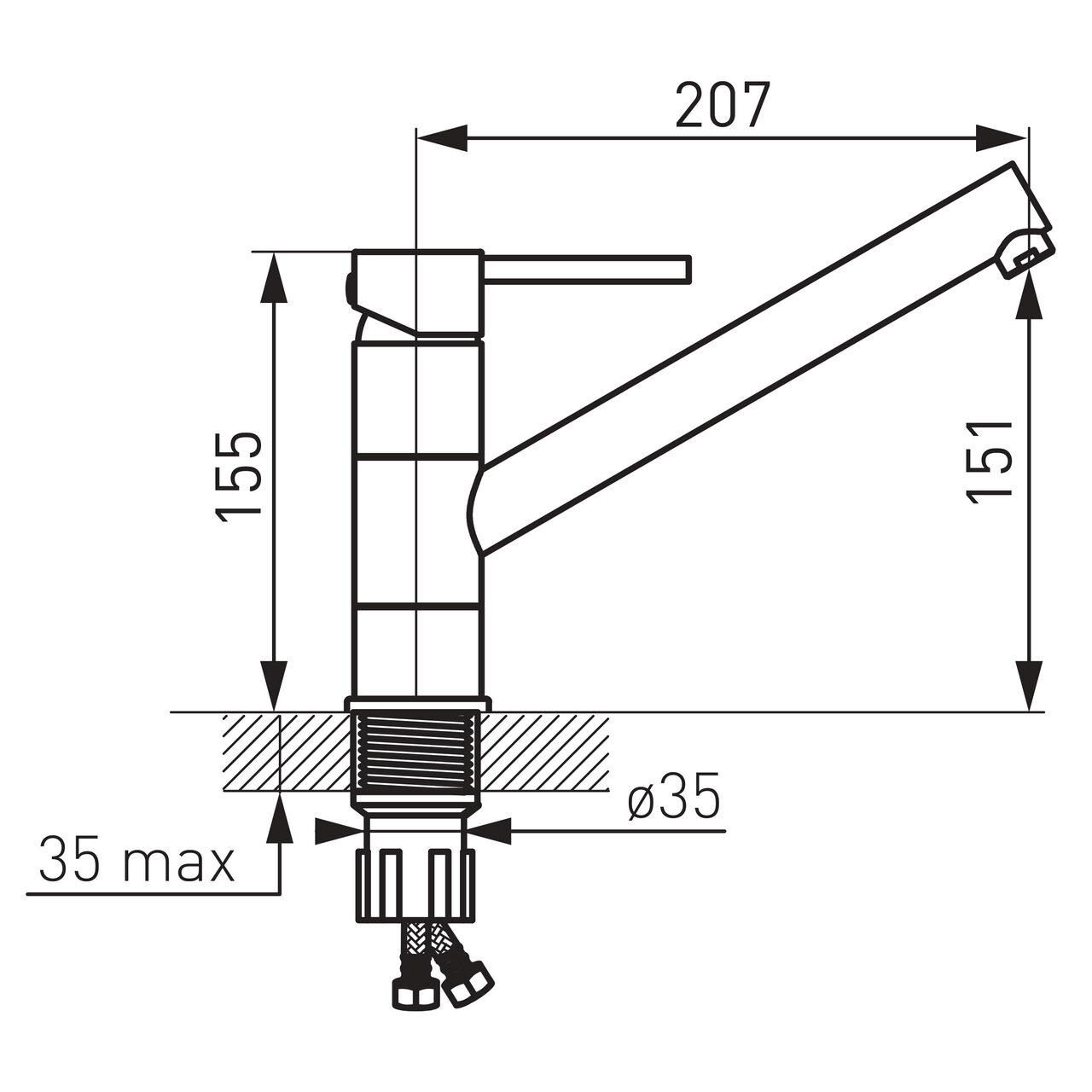 Proiectată pentru utilizare zilnică în bucătărie, oferă control precis al debitului printr-un cartuș ceramic și o distribuție uniformă datorită aeratorului M18x1 cu funcție de jet. Pipă cu rotire asigură acces comod la chiuvetă, iar înălțimea de 155 mm și înălțimea de evacuare de 151 mm contribuie la manevrare facilă fără stropiri inutile. Conexiunile sunt standardizate, facilitând integrarea în instalațiile existente, iar clasa de debit A susține un consum eficient în utilizare curentă. Dimensiunile compacte, cu pipă de 207 mm și lățime de 45 mm, optimizează spațiul de lucru, în timp ce grupul acustic II contribuie la un nivel de zgomot moderat în funcționare.