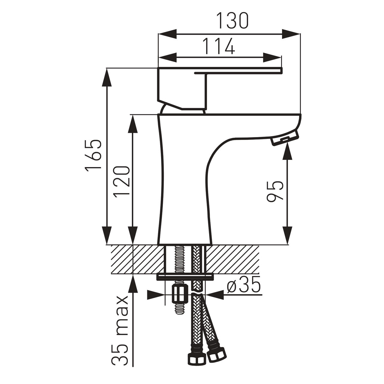 Proiectată pentru lavoare, această baterie oferă un echilibru între dimensiuni compacte și utilizare confortabilă. Înălțimea totală de 162 mm și înălțimea de evacuare a apei de 98 mm facilitează spălarea zilnică, fără stropiri excesive. Controlul precis cu cartuș ceramic asigură manevrare lină și reglaj stabil al debitului. Corpul din alamă susține rezistența mecanică în timp, iar aeratorul M24x1 pentru jet uniform contribuie la o curgere controlată a apei. Pipa de 95 mm poziționează fluxul într-o zonă practică a cuvei, optimizând spațiul de lucru la lavoar în utilizarea cotidiană.
