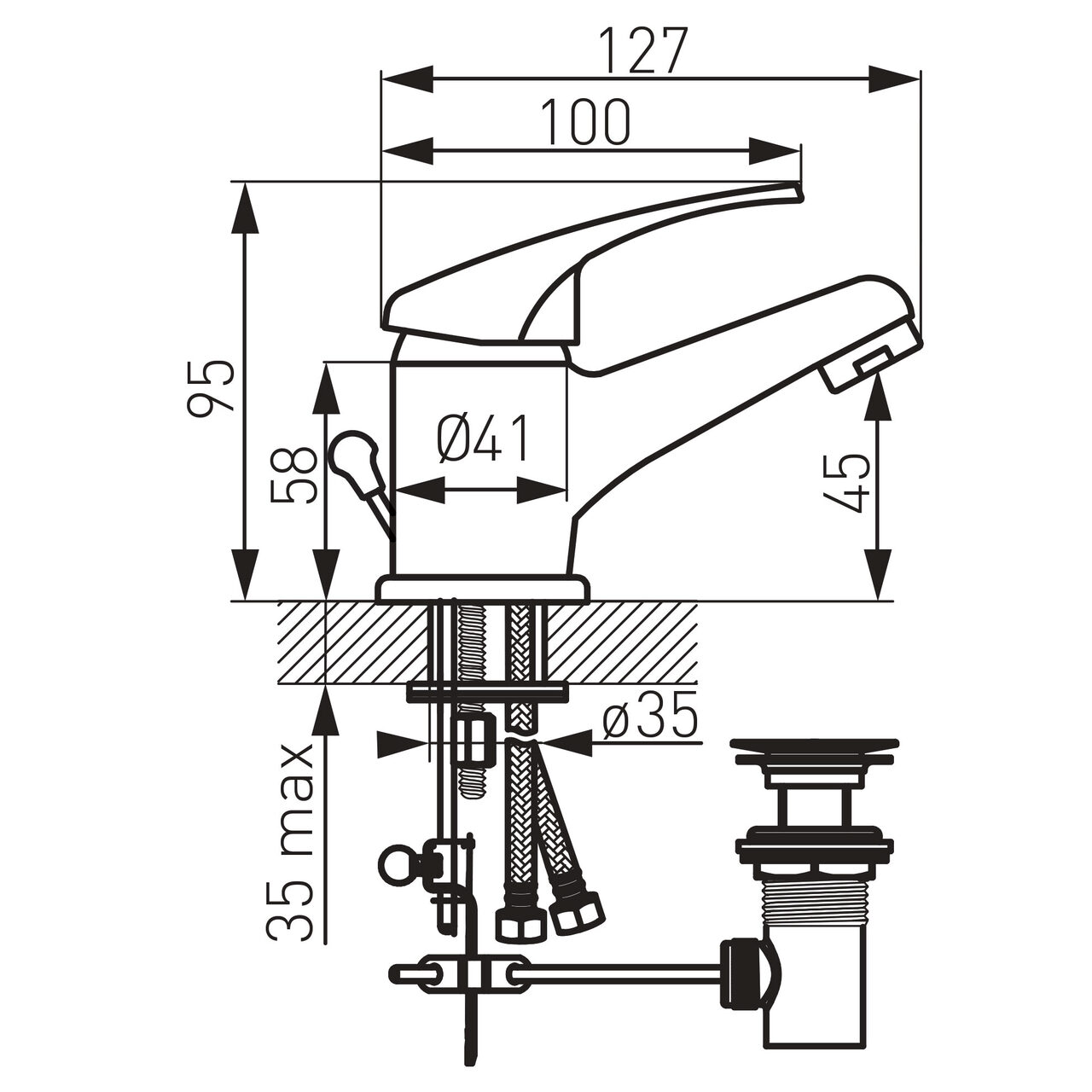 - Înălțime evacuare apă: 45 mm