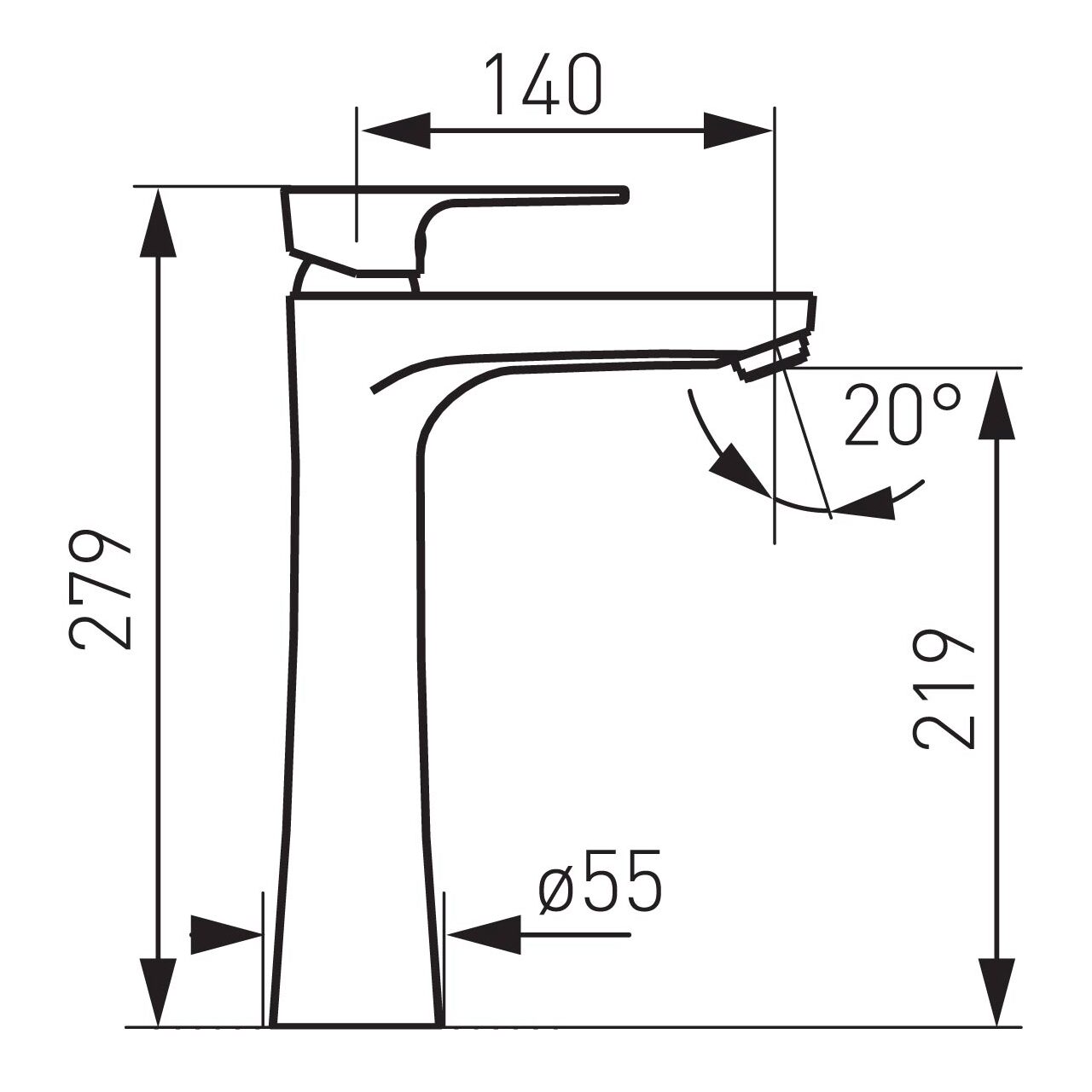 Evacuarea la 219 mm asigură spațiu confortabil pentru spălare și umplerea vaselor, cu o pipă de 140 mm ce facilitează direcționarea apei în zona utilă a lavoarului. Controlul temperaturii și al debitului se face printr-un cartuș ceramic, conceput pentru acționare lină și repetabilă. Pentru o utilizare plăcută, bateria include un aerator M24x1 care formează un jet aerat, uniform și bine direcționat, potrivit pentru activitățile zilnice la lavoar. Înălțimea totală de 279 mm contribuie la integrarea facilă pe lavoare cu spațiu liber superior. Evacuarea înaltă de 219 mm împreună cu lungimea penei de 140 mm permit o utilizare confortabilă, inclusiv la clătirea obiectelor, reducând stropirea în jurul chiuvetei.