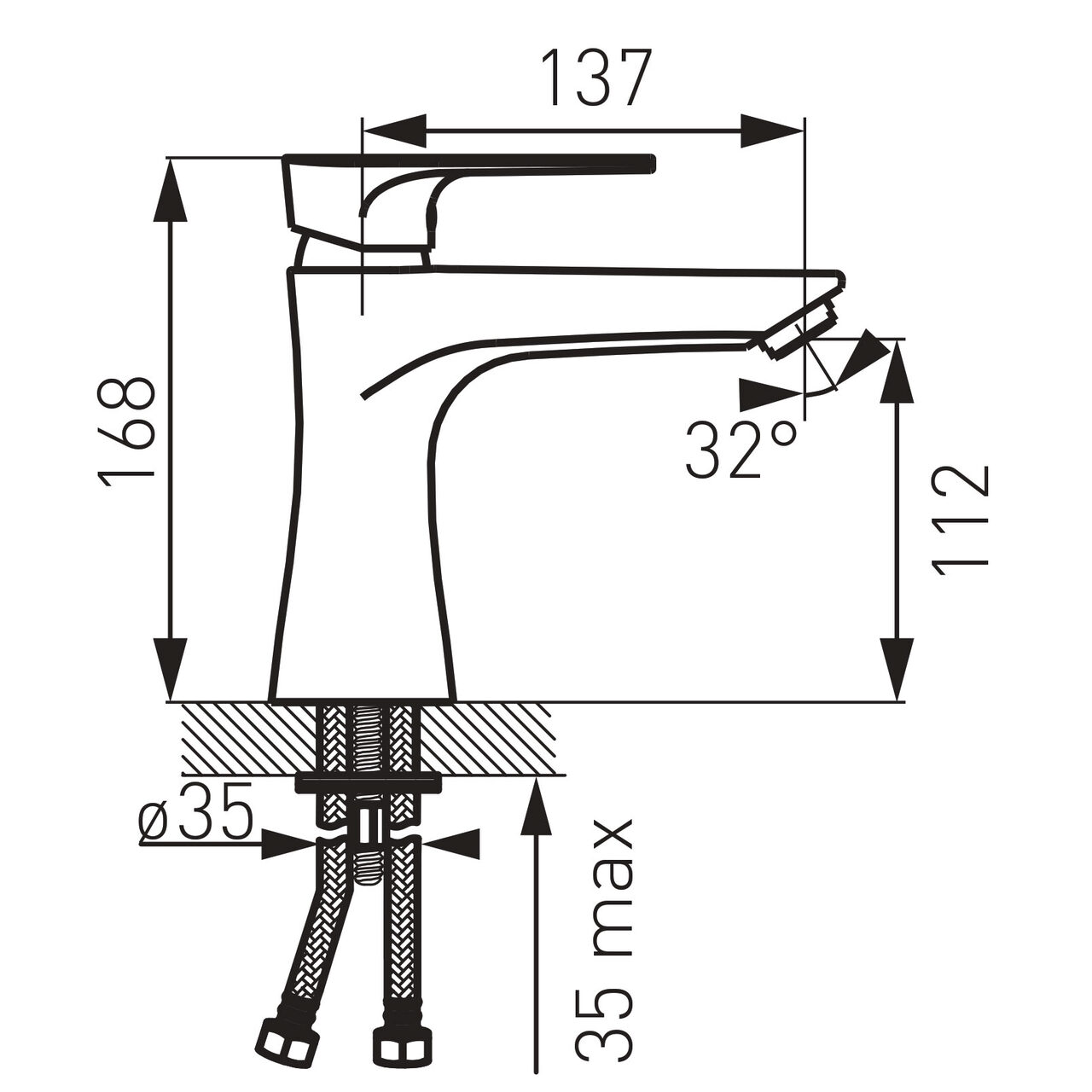 Proiectată pentru utilizare zilnică la lavoar, această baterie oferă control stabil al debitului prin cartuș ceramic, contribuind la o acționare lină a manetei. Evacuarea la nivelul gurii de scurgere este poziționată la 111 mm, iar lungimea pipei de 137 mm asigură o acoperire confortabilă a cuvei. Integrarea unui aerator M24x1 uniformizează jetul pentru spălare precisă. Montajul este facil datorită racordurilor flexibile G3/8 - M10x1, compatibile cu alimentări uzuale. Înălțimea totală de 168 mm favorizează manevrarea fără stropire, iar grupul acustic II susține un nivel sonor adecvat utilizării în baie. Materialul carcasei din alamă și elementele de îmbinare solide susțin stabilitatea pe lavoar.