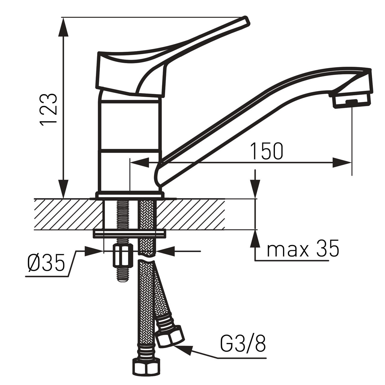 Proiectată pentru utilizare zilnică, această soluție asigură un control stabil al debitului prin cartuș ceramic pentru reglaj precis, menținând cursul apei constant și ușor de dozat. Construcția din carcasă din alamă contribuie la o structură solidă, potrivită pentru mediul umed al băii. Dimensiunile echilibrate, cu o înălțime de 123 mm și o lățime de 50 mm, favorizează integrarea pe lavoare variate fără a ocupa spațiu suplimentar. Lungimea pipei de 150 mm oferă acoperire funcțională a zonei de spălare, în timp ce jetul format de aeratorul M24x1 optimizează amestecul apă-aer pentru un flux uniform. Designul stativ sprijină montarea curată pe lavoar, cu acces facil la comandă. Instalarea este simplificată prin racorduri flexibile G3/8 - M10x1, compatibile cu alimentările uzuale, ceea ce facilitează conectarea fără adaptări suplimentare. Clasa de debit A indică un regim de curgere eficient pentru spălare zilnică, iar grupul acustic N susține o funcționare liniștită în utilizare obișnuită. Elementul de control cu cartuș ceramic asigură trecerea lină între temperaturi și limitează uzura pieselor mobile. Absența ventilului de scurgere integrat permite configurarea scurgerii conform preferințelor existente ale lavoarului. Dimensiunile compacte, împreună cu pipea de 150 mm, creează o ergonomie previzibilă la spălare, fără depășirea marginii cuvei, pentru o utilizare stabilă în ritmul cotidian. Jetul este gestionat de aeratorul M24x1, care creează un flux aerat, bine direcționat, util în reducerea stropilor pe marginea lavoarului. Materialele alese, precum alamă pentru carcasă și cartușul ceramic la elementul de control, susțin precizia mișcărilor și păstrarea setărilor de debit. Lățimea de 50 mm și înălțimea totală de 123 mm contribuie la o amprentă compactă pe blat, iar lungimea pipei de 150 mm acoperă eficient zona activă. Racordurile flexibile G3/8 - M10x1 oferă conectică standardizată, simplu de poziționat la montaj. Pentru utilizări frecvente, fluxul reglementat de clasa de debit A asigură spălări consecvente, însoțite de un nivel acustic previzibil asociat grupului N, adecvat spațiilor de baie domestice.
