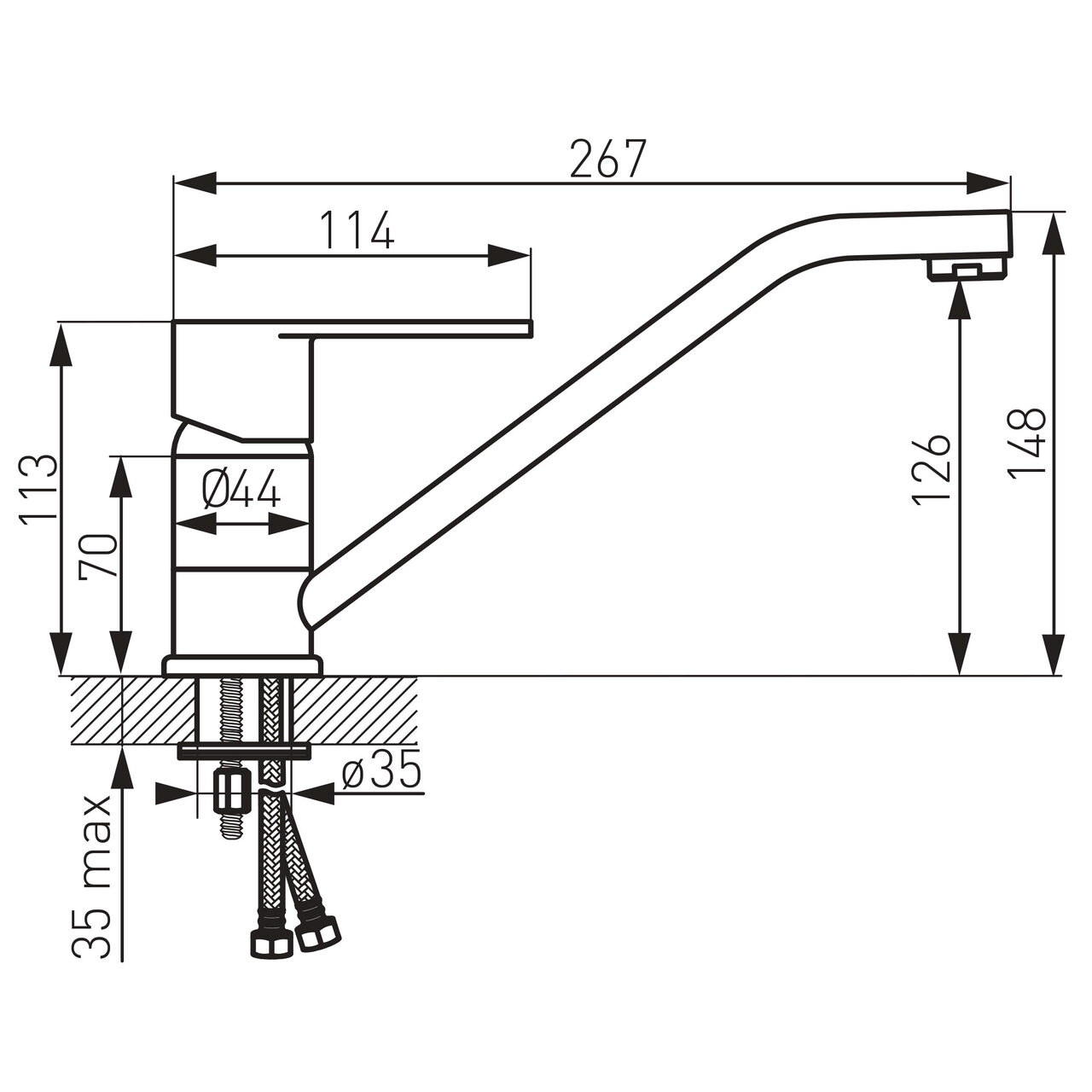 Concepută pentru uz cotidian în bucătărie, această baterie stativă asigură o conectare clară prin racorduri flexibile G3/8 - M10x1, ușurând integrarea cu instalațiile existente. Controlul se realizează prin cartuș ceramic pentru o acționare precisă, oferind reglaj fin al temperaturii și debitului. Pipă cu rotire pentru direcționarea comodă a jetului simplifică spălarea vaselor și a recipientelor voluminoase. Aeratorul M24x1 livrează flux uniform prin funcție de jet cu aerare, contribuind la limitarea stropilor. Înălțimea de 148 mm sprijină manevrarea în spații standard sub dulapurile suspendate. Încadrarea în grupul acustic II și clasa de debit A susțin o utilizare echilibrată, orientată pe confortul zilnic. Carcasa din alamă asigură stabilitate la montaj și rezistență la utilizare frecventă.