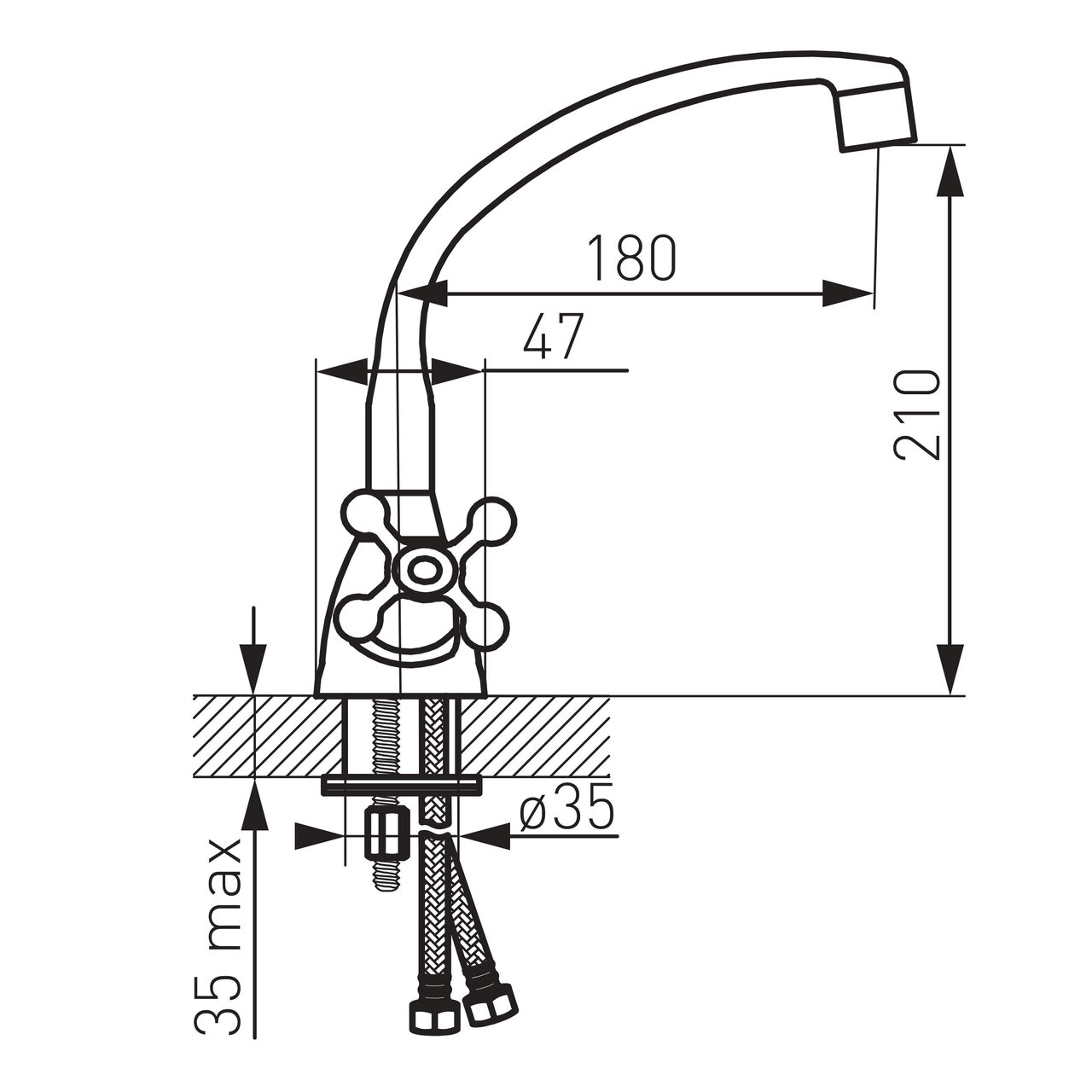 Concepută pentru utilizare zilnică în bucătărie, această baterie oferă manevrare sigură și control stabil prin elementul de control cu cap ceramic, care contribuie la o reglare fină a temperaturii și debitului. Pipa cu lungime de 180 mm facilitează accesul peste cuvă și manevrarea vaselor voluminoase, iar tipul de pipă cu rotire permite orientarea jetului acolo unde este necesar. Aeratorul M24x1 produce un jet uniform, susținut de aeratorul integrat pentru jet aerat, util în reducerea stropirilor. Conectarea se face ușor cu racorduri flexibile G3/8 - M10x1, pentru o integrare curată în instalație. Grupul acustic II sprijină o funcționare cu zgomot controlat în timpul utilizării.