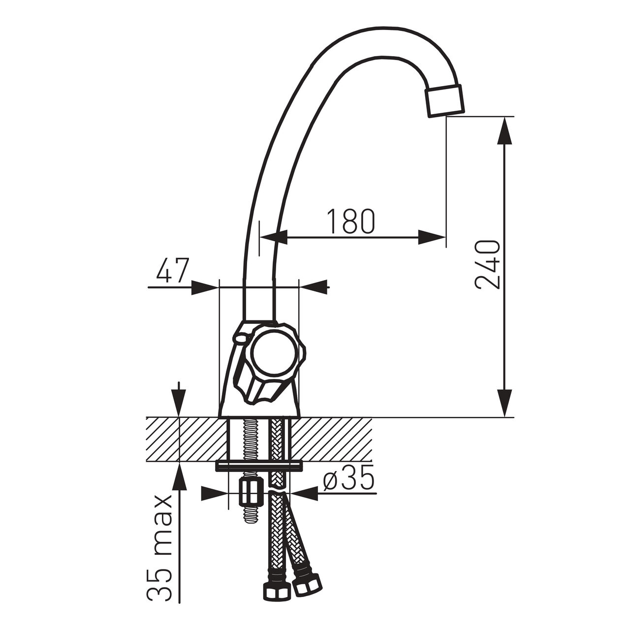 Proiectată pentru montaj pe blat, această baterie asigură conectare rapidă prin racorduri flexibile G3/8 - M10x1, ușurând instalarea în majoritatea configurațiilor de bucătărie. Tipul de pipă cu rotire permite orientarea fluxului acolo unde este necesar, sprijinind activitățile zilnice de clătire și spălare. Construcția din alamă pentru carcasă și montură oferă soliditate mecanică și stabilitate în timp. Elementul de control de tip cap glisor facilitează o operare previzibilă, potrivită utilizării frecvente la chiuvetă. În plus, încadrarea în grupul acustic II și în clasa de debit A indică o funcționare conformă cu parametri clari de utilizare curentă. Lungimea pipei de 180 mm pentru acoperire funcțională optimizează raza de acțiune la chiuvetă, fără a ocupa spațiu inutil. Aeratorul M22x1 pentru jet controlat ajută la obținerea unui flux uniform al apei, util pentru clătiri precise sau umplerea vaselor. Rotirea pipei simplifică trecerea între cuve, iar capul glisor oferă un mod unitar de acționare a fluxului. Materialele alese și îmbinările filetabile standard contribuie la o montare curată și la intervenții de întreținere previzibile, atunci când este necesar să se demonteze aeratorul pentru curățare periodică. Racordurile flexibile G3/8 - M10x1 pentru integrare facilă vă oferă compatibilitate cu instalații uzuale, reducând complexitatea adaptărilor. Aeratorul filetat M22x1 se poate demonta cu ușurință pentru îndepărtarea depunerilor, susținând calitatea jetului în timp. Încadrarea în clasa de debit A oferă un reper tehnic privind regimul de curgere, util la dimensionarea utilizării zilnice. Grupul acustic II caracterizează nivelul de zgomot în exploatare, potrivit spațiilor casnice. Toate aceste elemente lucrează coerent pentru a furniza un control predictibil al apei, cu manevrabilitate confortabilă în bucătărie. Structura din alamă, împreună cu elementul de control tip cap glisor, asigură o utilizare stabilă, zi de zi. Pipă rotativă și lungimea de 180 mm oferă un echilibru între mobilitate și precizie, astfel încât să puteți gestiona fluxul exact acolo unde este nevoie. Aeratorul M22x1 generează un jet bine definit, potrivit activităților culinare uzuale. Conectica flexibilă facilitează poziționarea corectă în spații variate, iar specificațiile clare privind clasa de debit și grupul acustic simplifică alegerea și integrarea în instalația existentă, cu o exploatare previzibilă pe termen lung.