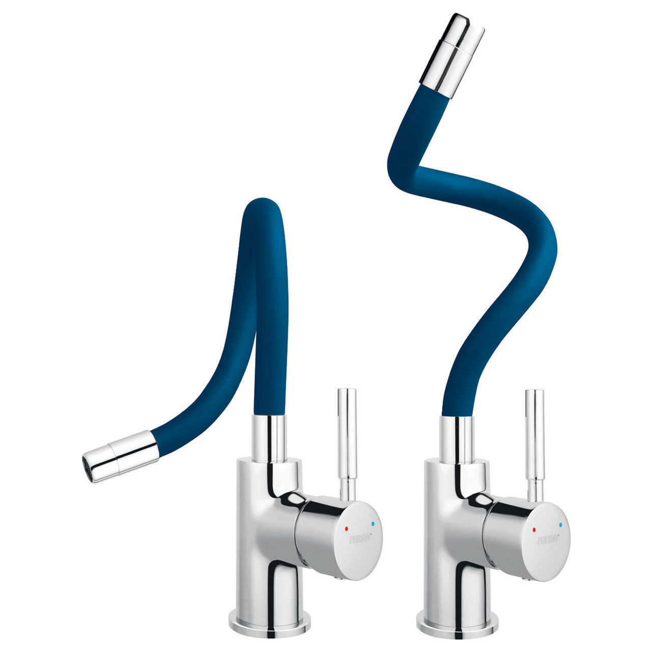 Baterie stativa spalator Zumba, crom/albastru, pipa elastica, Ferro BZA4L - Informații despre acest produs: