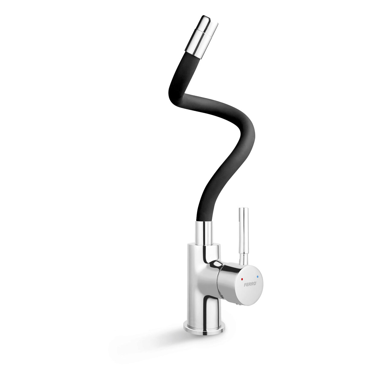 Baterie stativa spalator Zumba, crom/negru, pipa elastica, Ferro BZA4B - Informații despre acest produs: