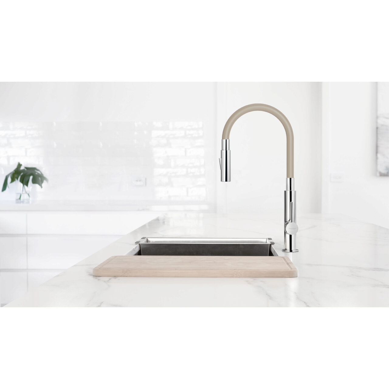 Pipa are lungime 190-410 mm, permițând orientarea fluxului pe distanțe diferite în funcție de poziționarea în zona chiuvetei.