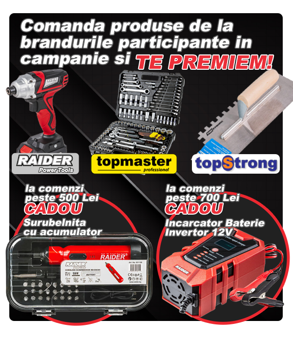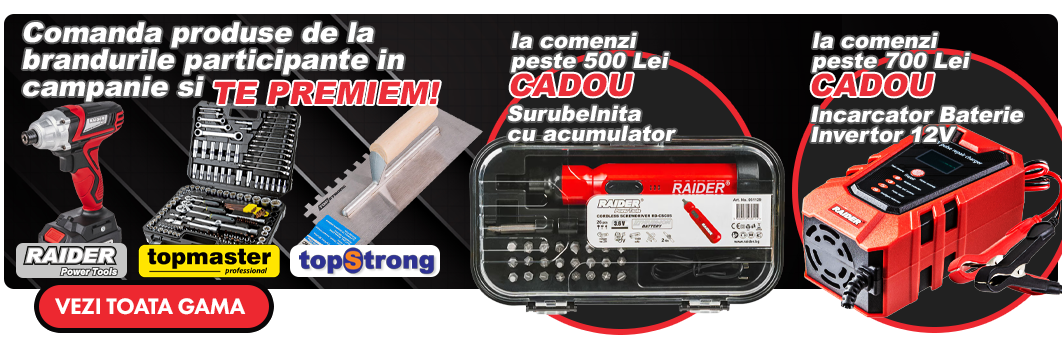 Totul pentru proiectul tău! Scule, unelte, materiale electrice, produse pentru casă şi grădină, construcții și amenajări, bucătărie profesională, sanitare, spume, silicoane, vehicule electrice, remorci auto și multe altele, mereu la cele mai bune preţuri!