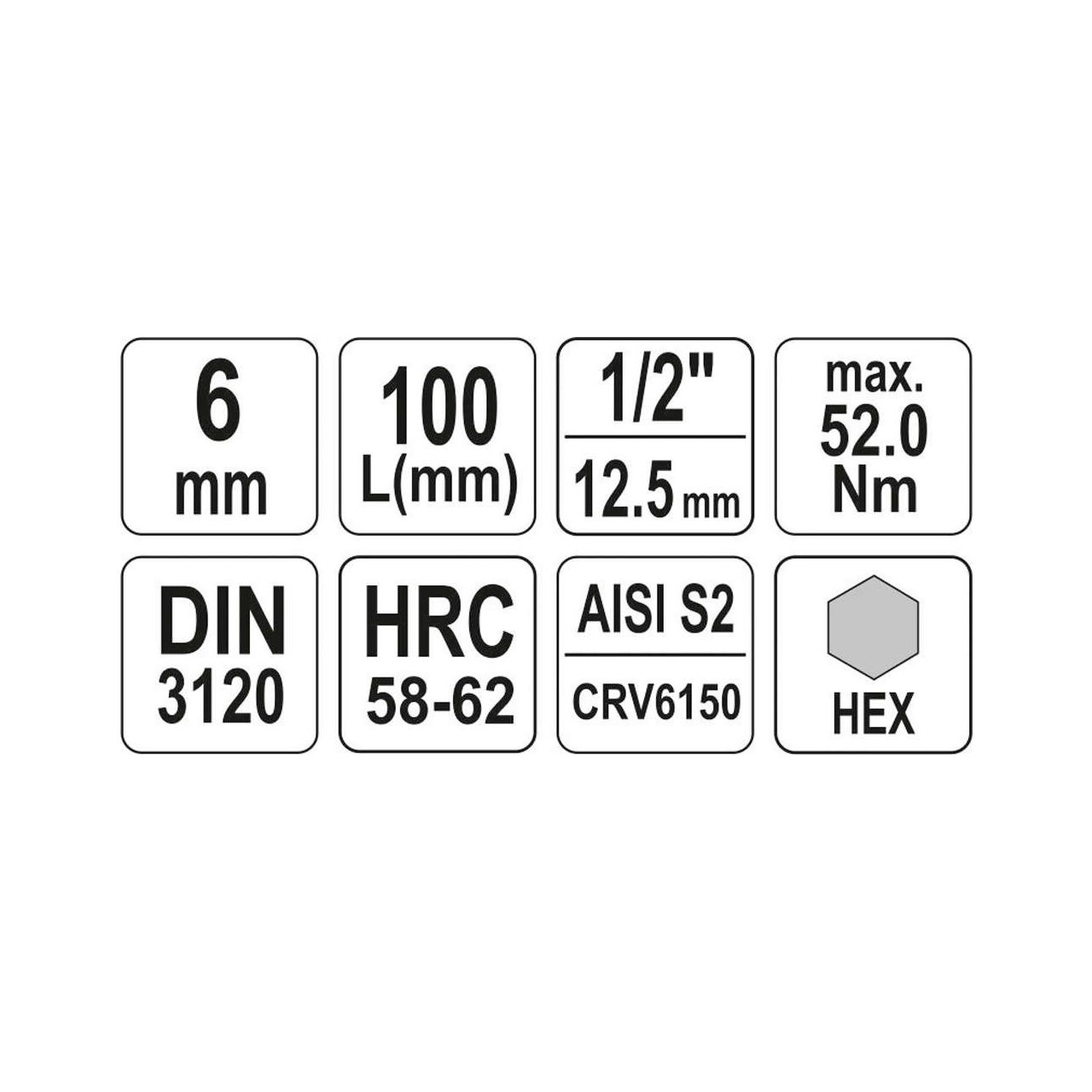 Bit hex 6 mm cu adaptor 1/2" 100 mm Yato YT-04392