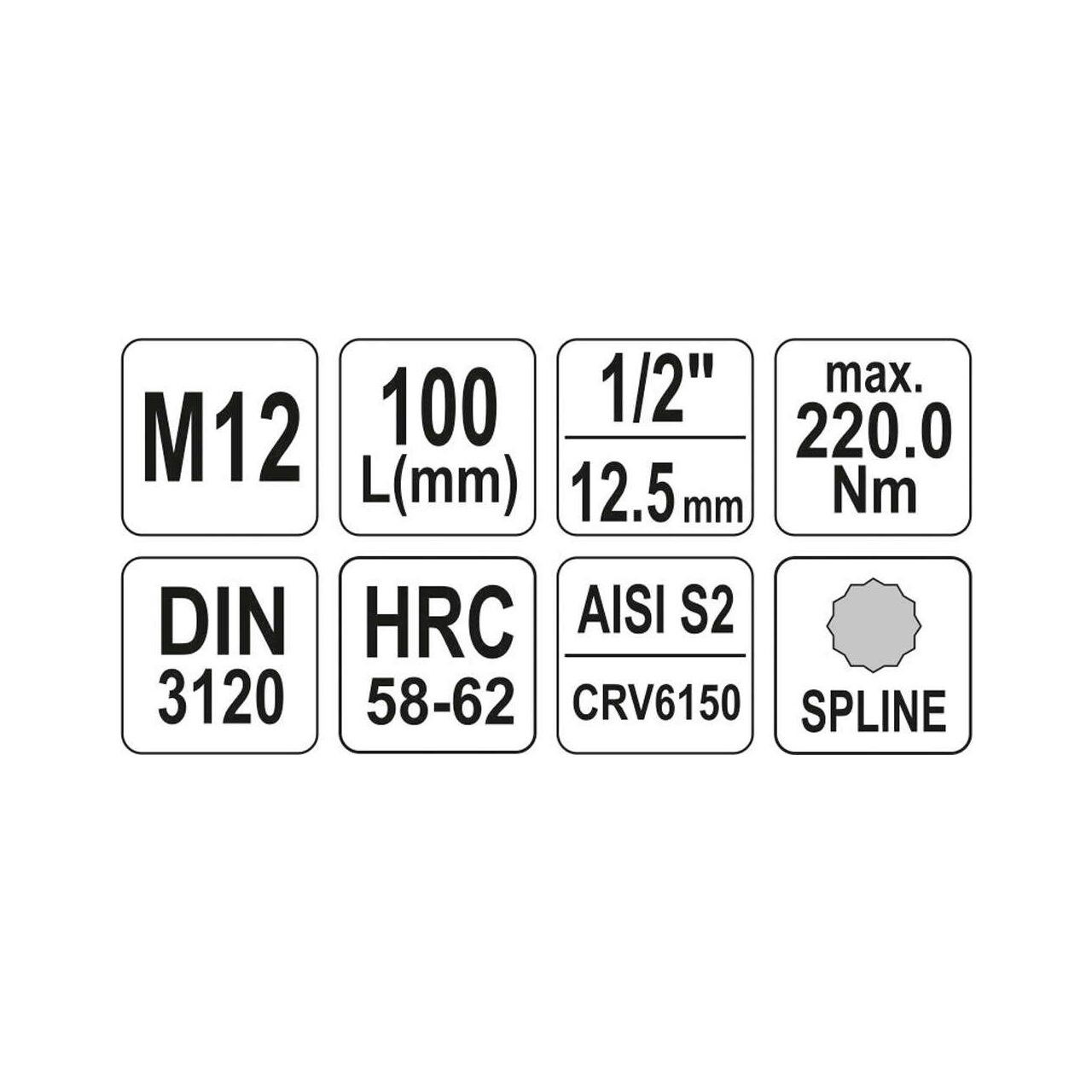 Bit spline cu adaptor 1/2" M12 100mm Yato YT-04354 - Informații despre acest produs:
