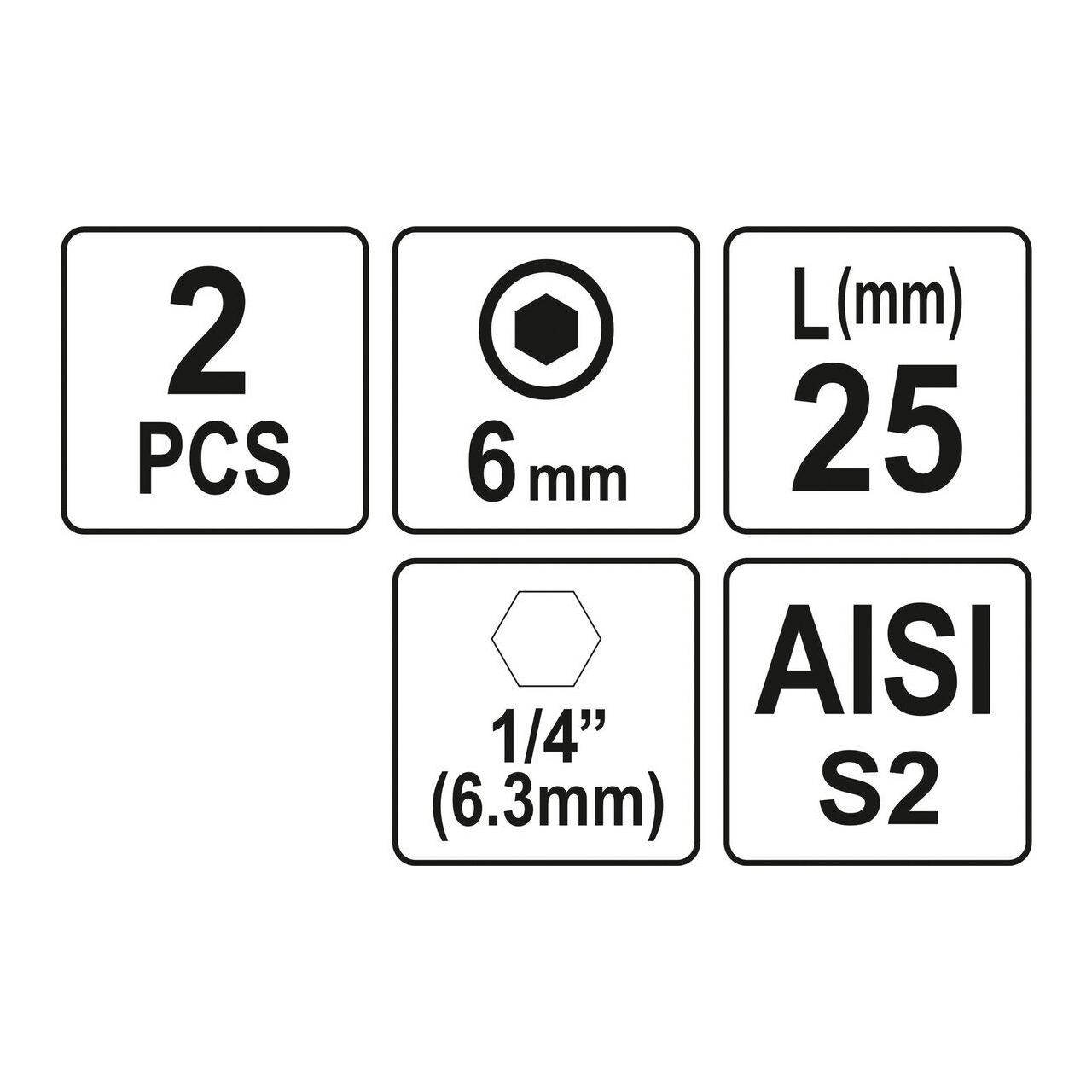 Biți 1/4 25mm hex H6, 2buc Yato YT-77923 - Informații despre acest produs: