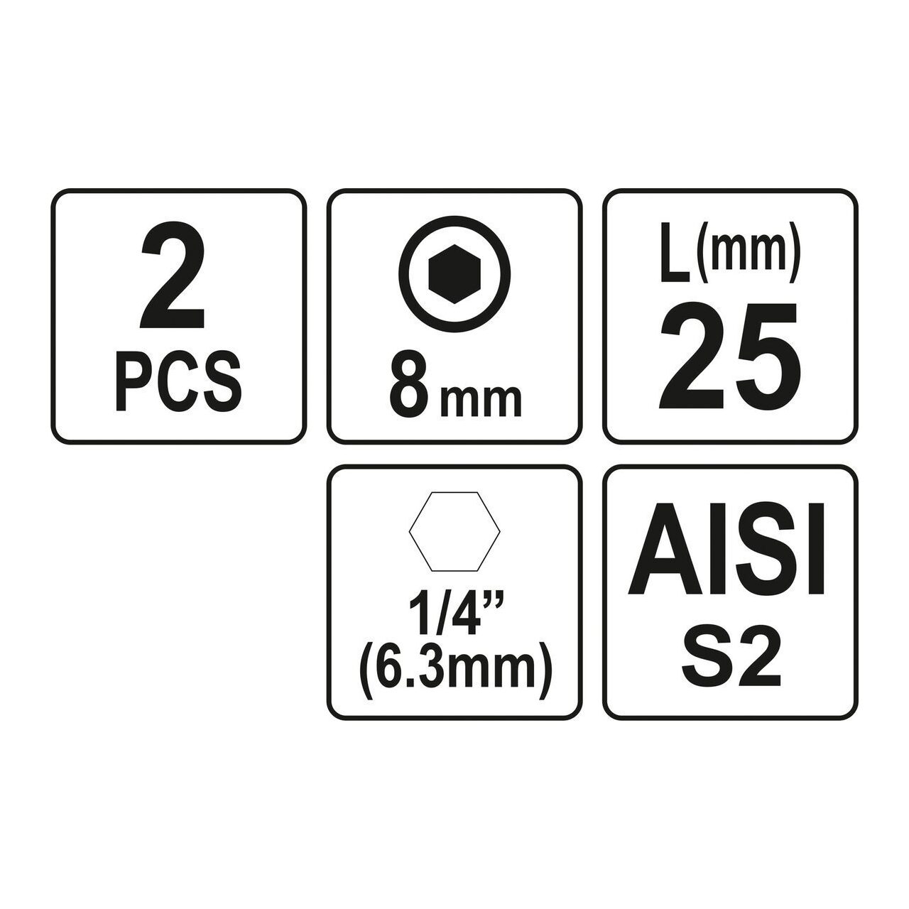 Biți 1/4 25mm hex H8, 2buc Yato YT-77924 - Informații despre acest produs: