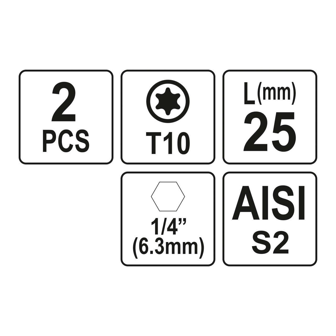 Biți 1/4 25mm torx T10, 2buc Yato YT-77902 - Informații despre acest produs: