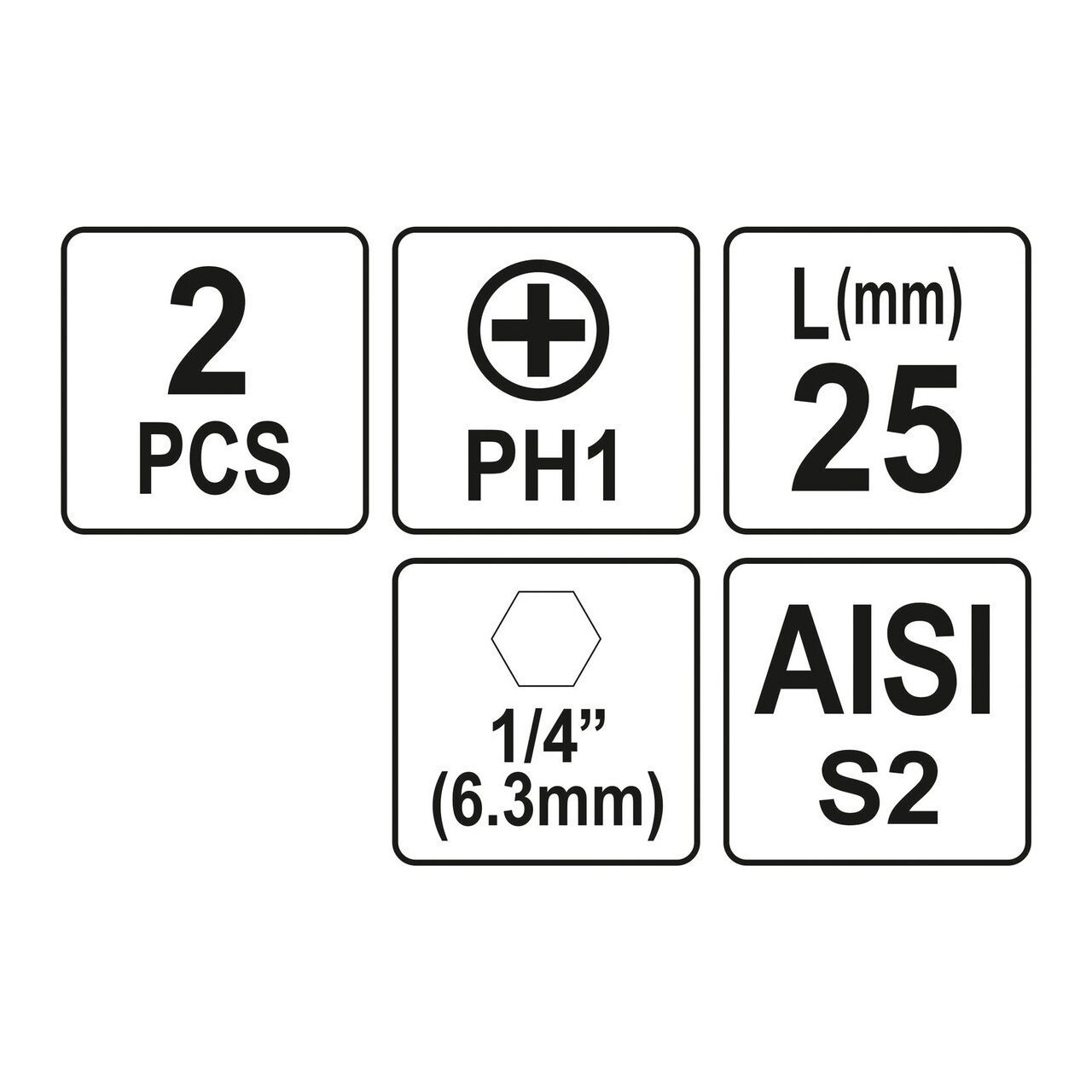 Biti 1/4 ph1x25 mm 2buc Yato YT-77871