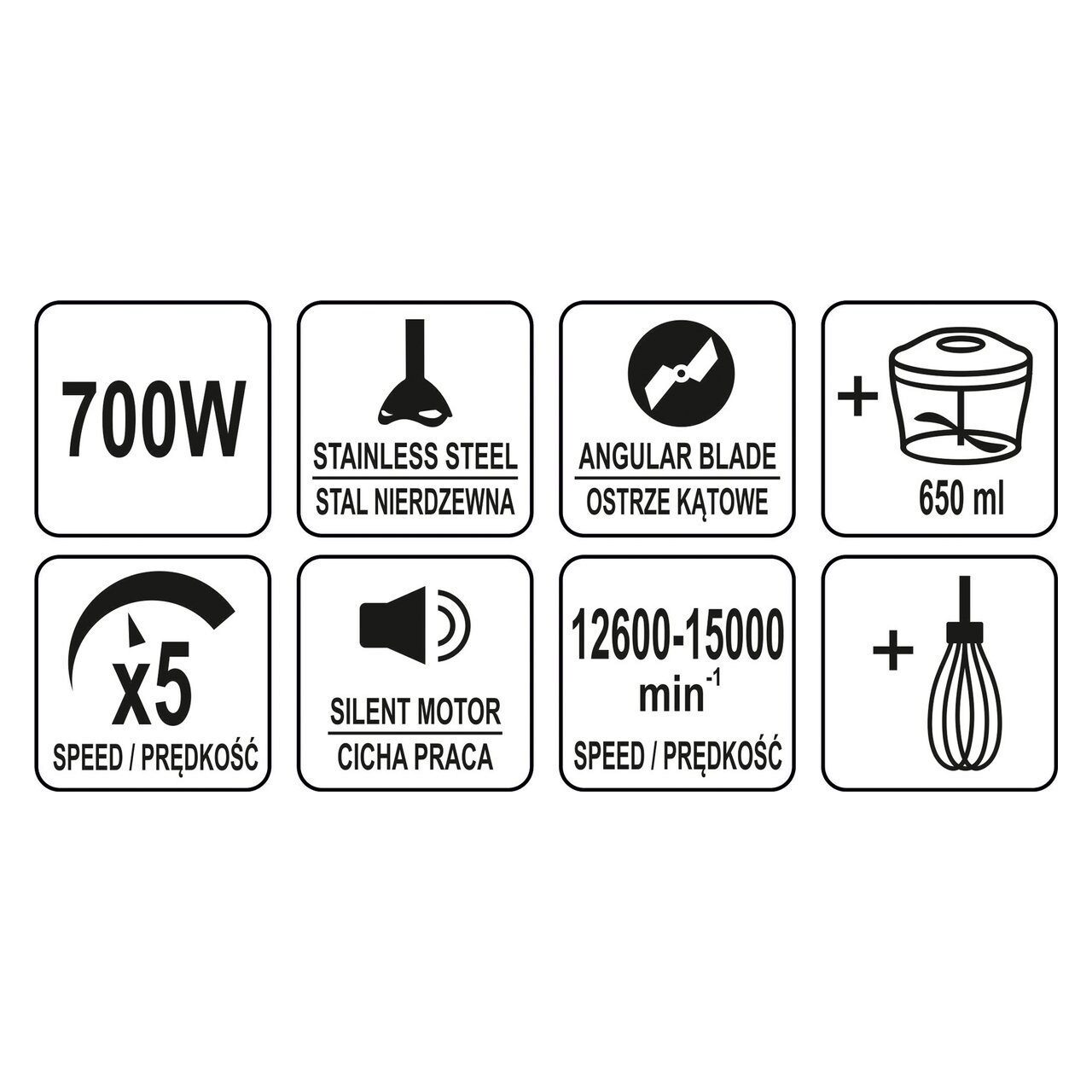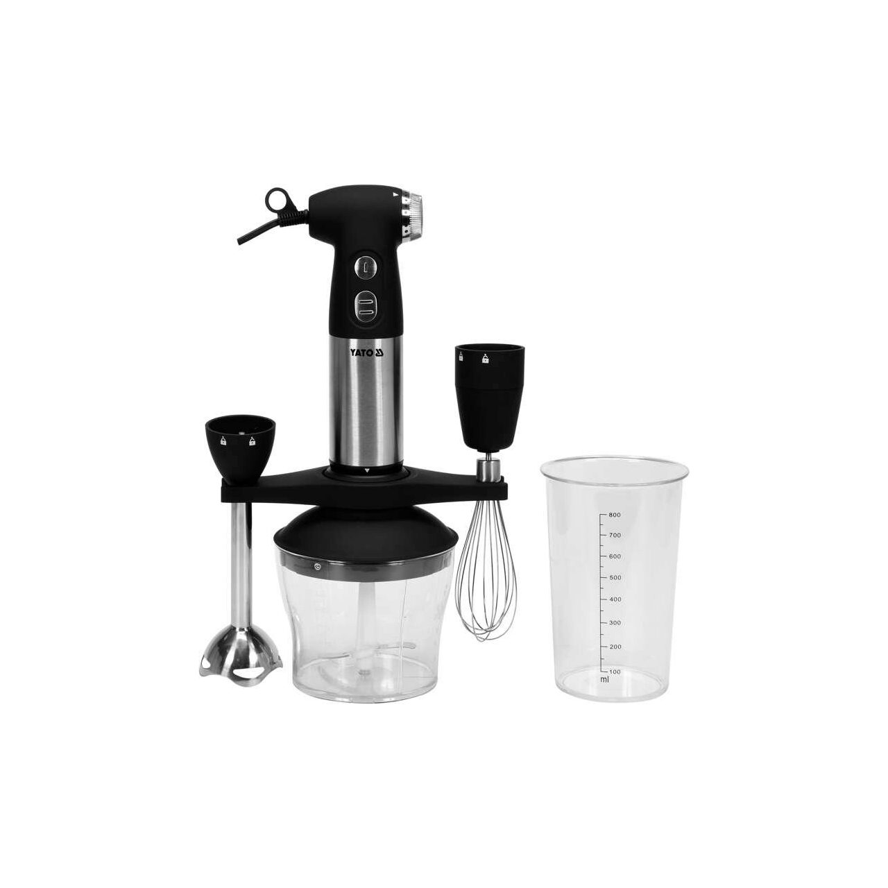 Mașină de spălat manual de la YATO pentru prepararea supelor-creme, sosurilor și cocktailurilor, precum și pentru tocat carne, tăiat legume sau spumă. Este perfect atât pentru mâncare moale, cât și pentru mâncare tare .